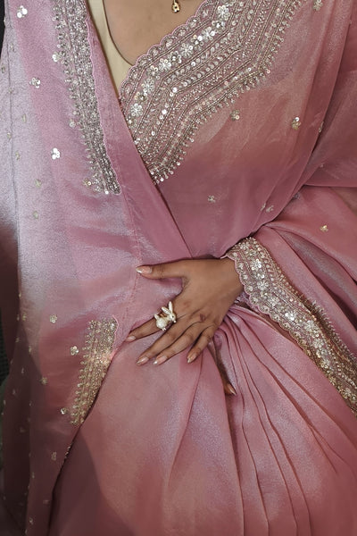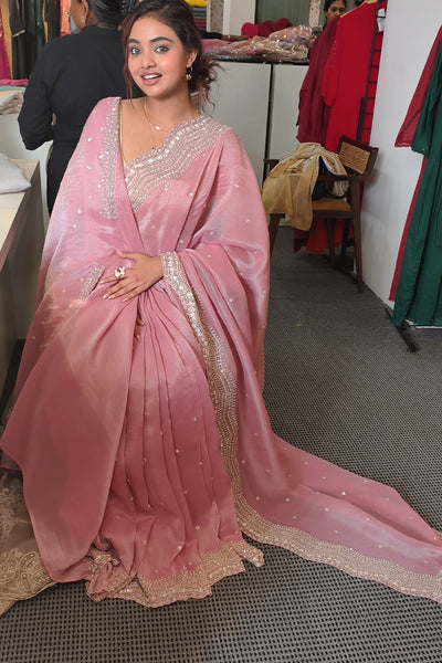 - Flowy Tissue saree with handwork