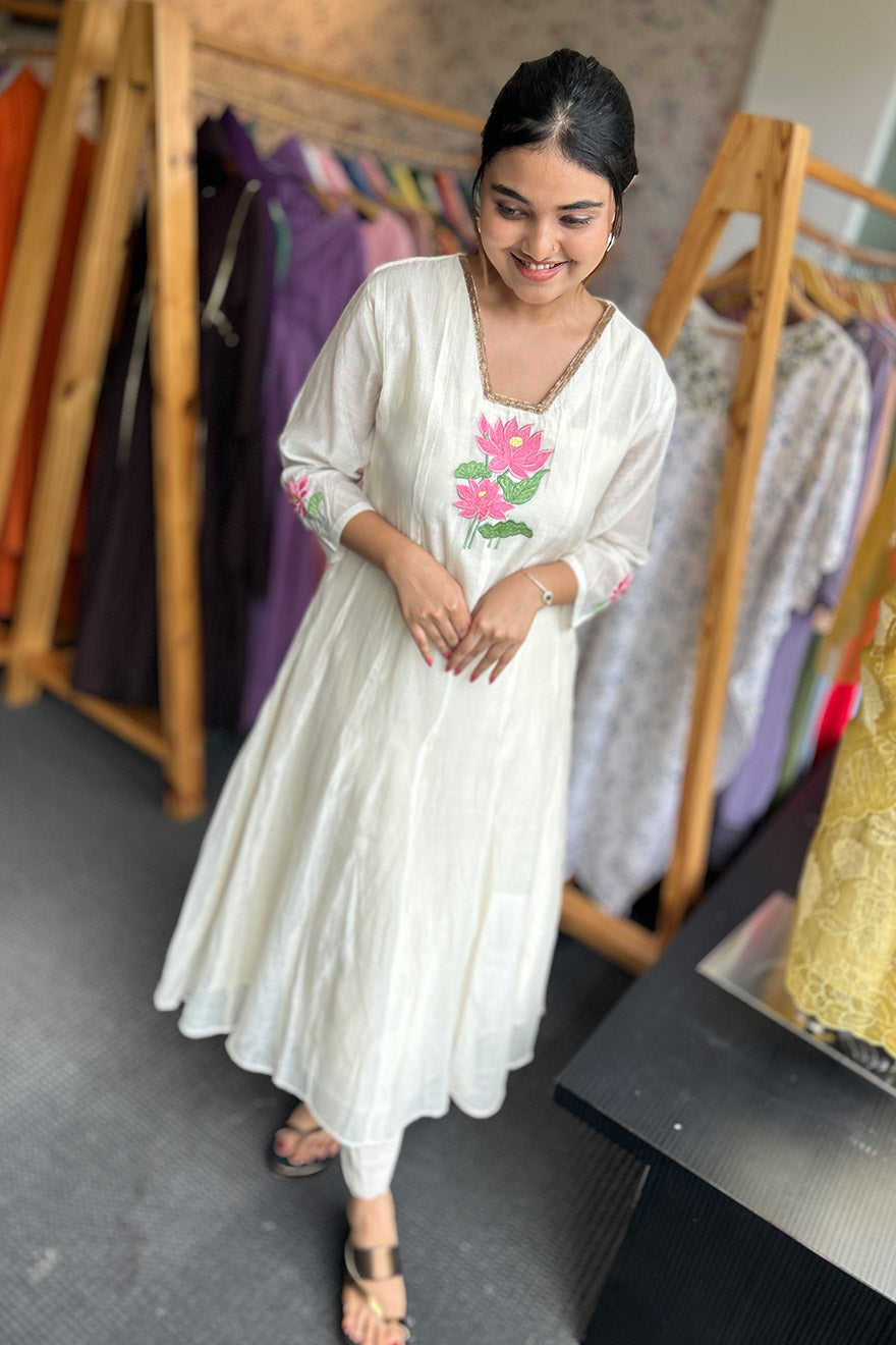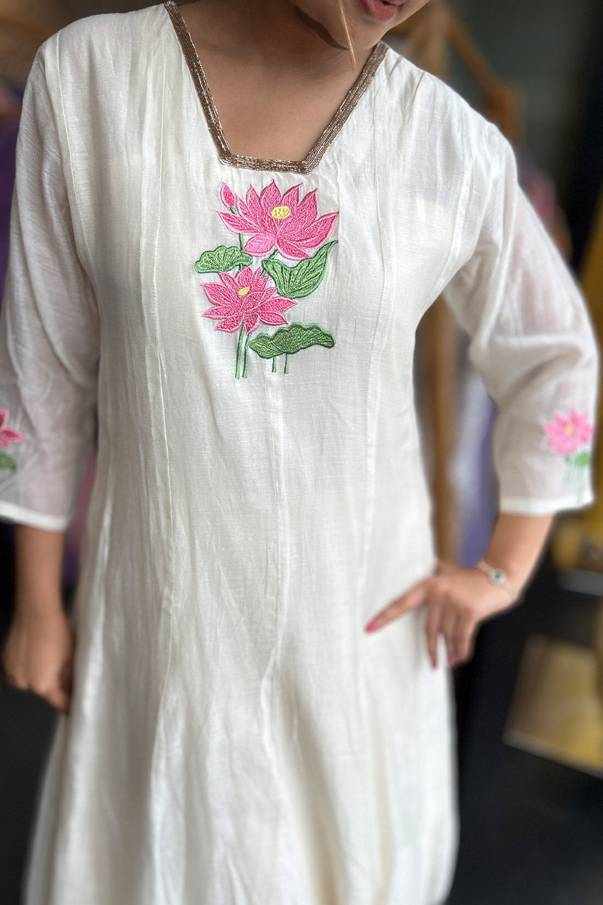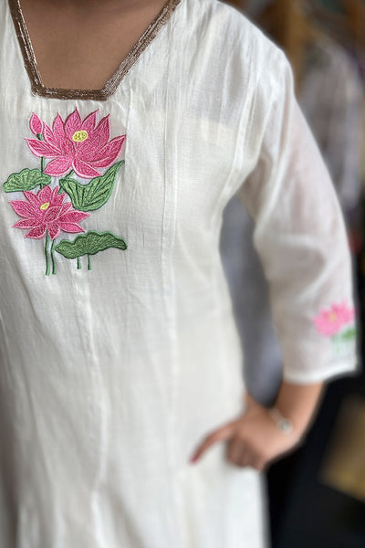 Panel cut top lotus embroidery- onam