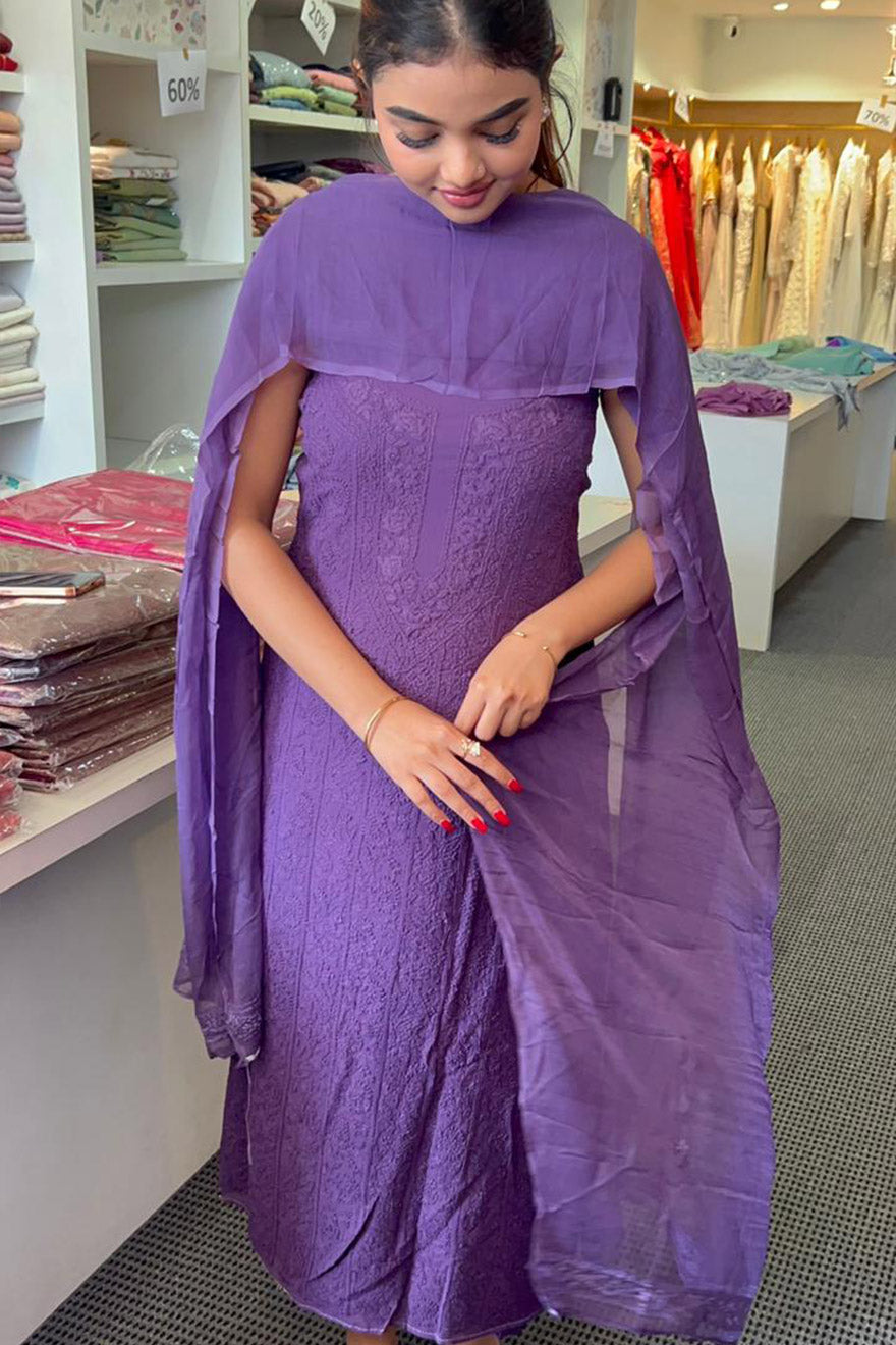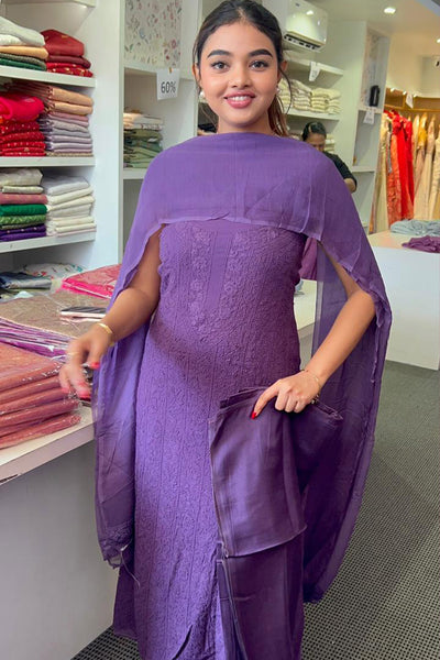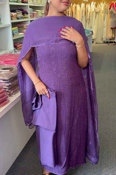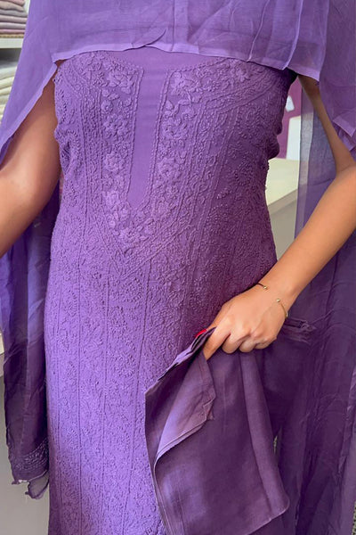 Violet Chikenkari salwar material