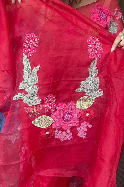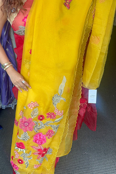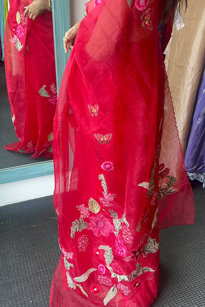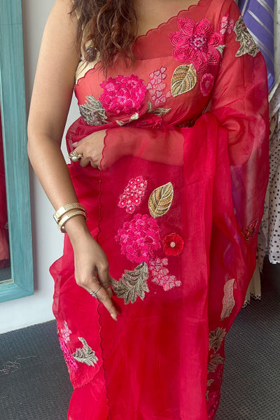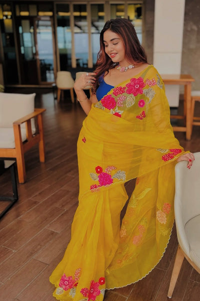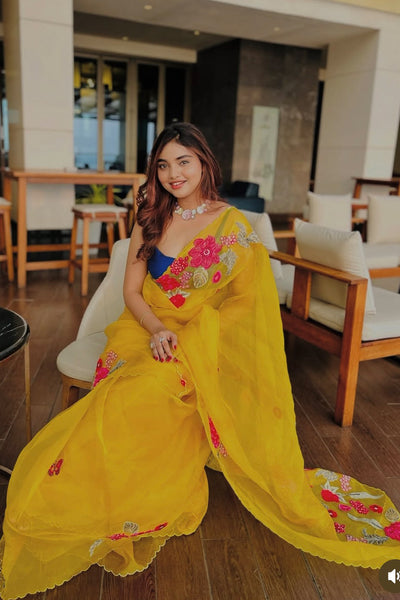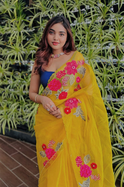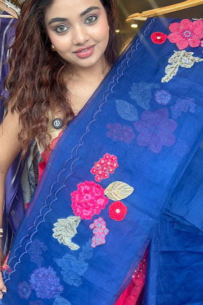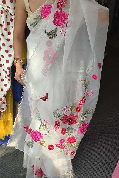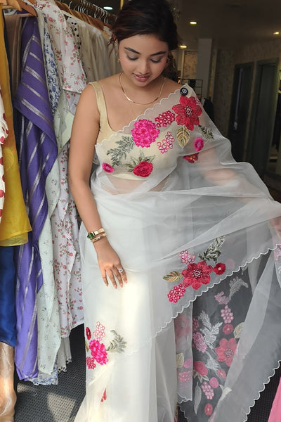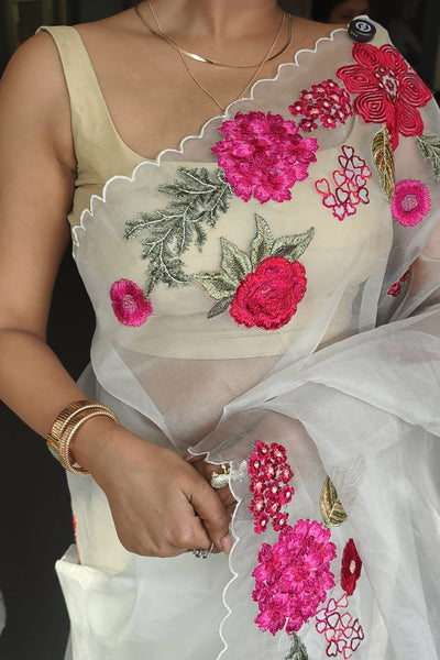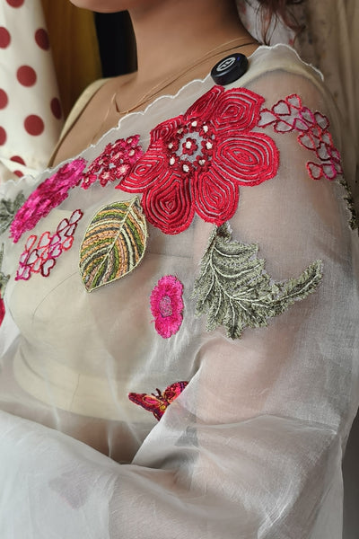 Organza saree with applique embroidery
