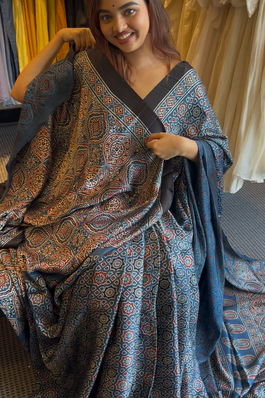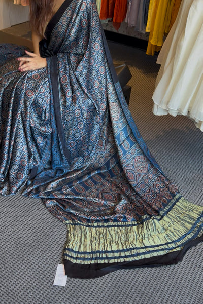 Pure modal silk saree- indigo and black
