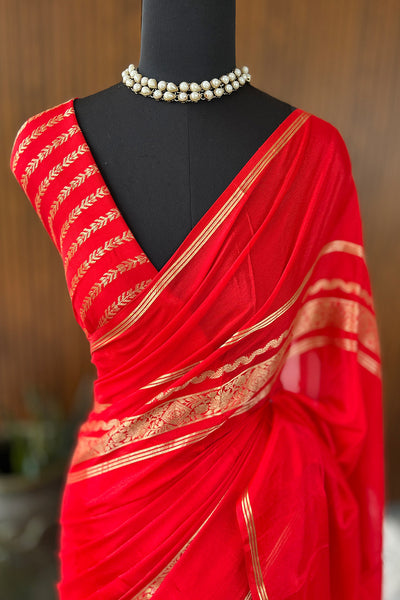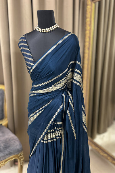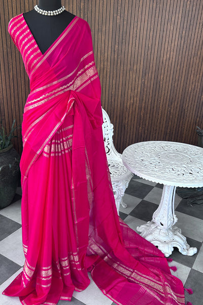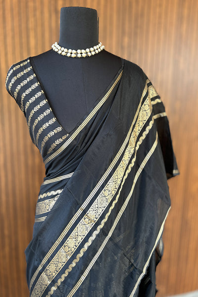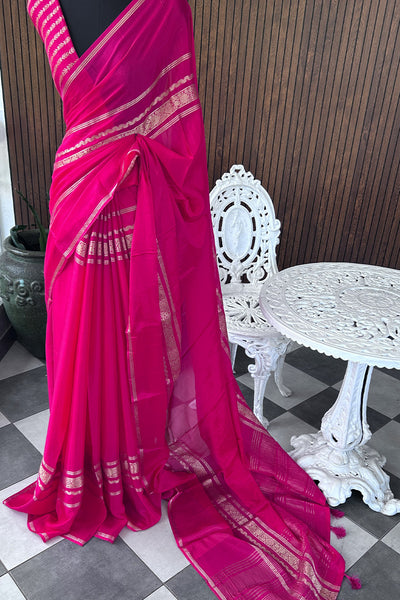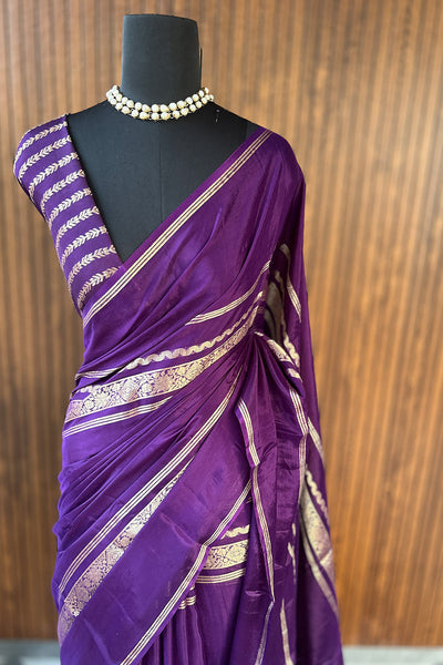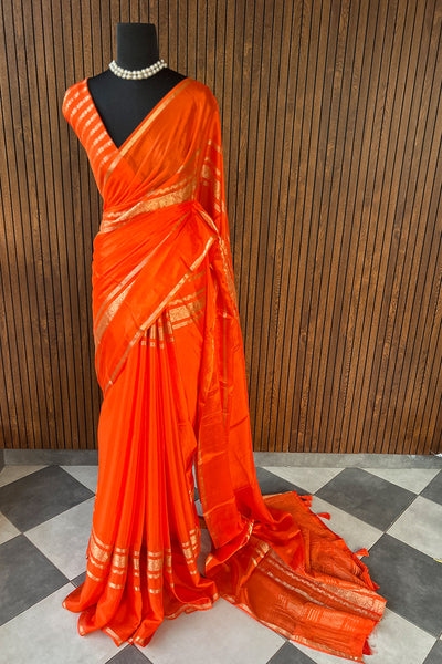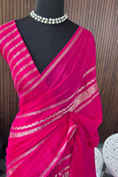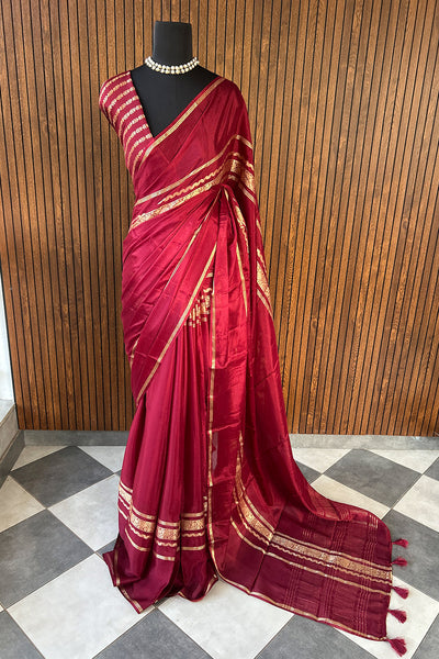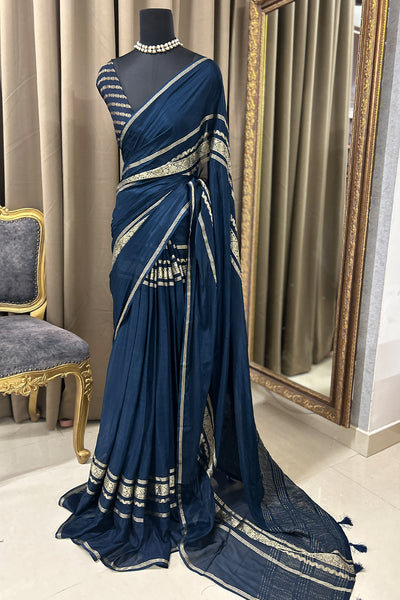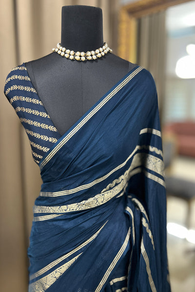 Semi silk saree with stripes blouse