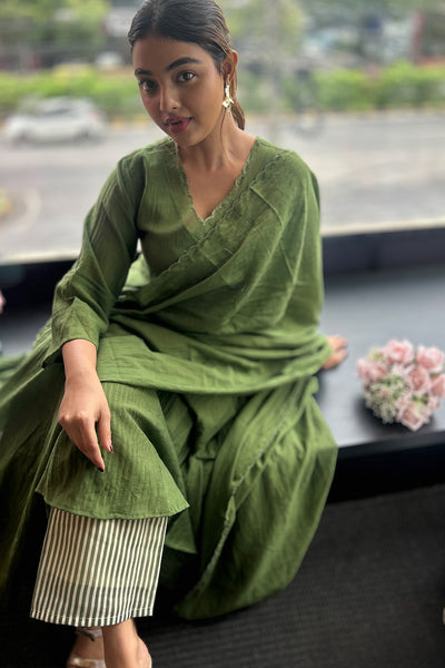Malai chanderi salwar suit with stripe pants