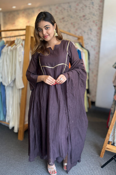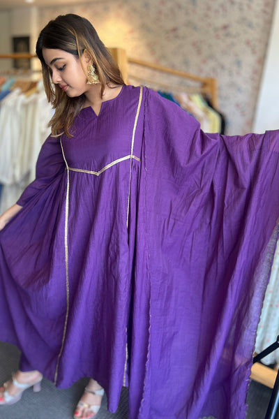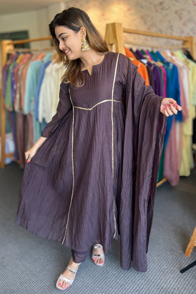 The fully stitched Malai Chandari salwar suit comes in princess Aline pattern. There was some gatherers on the sides of the top and ready golden lace, detailing all over the joints ,comes with scallop Dupatta and straight pant.