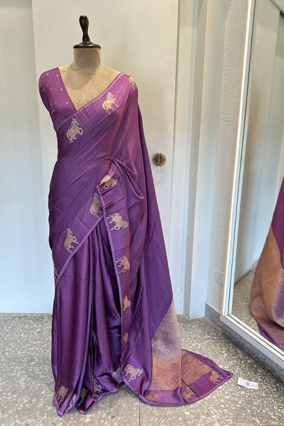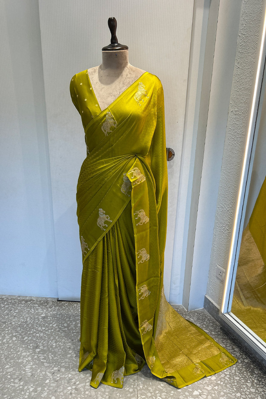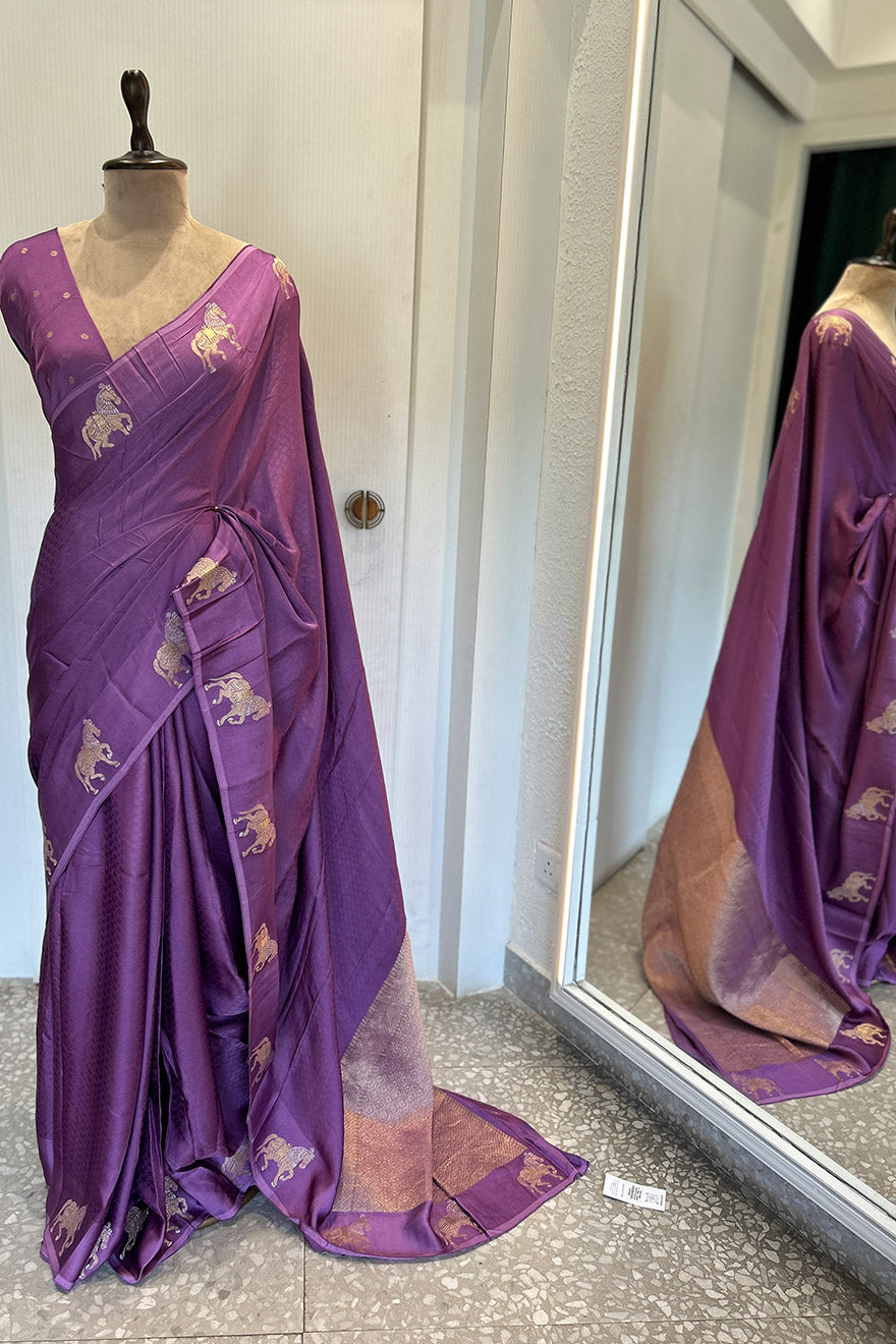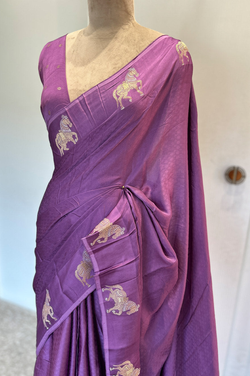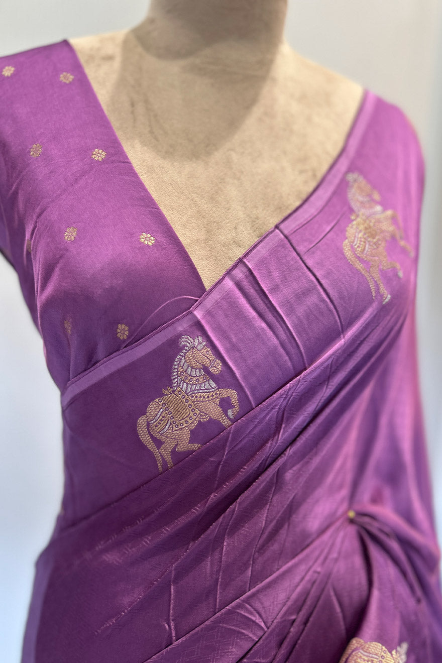 - Satin blend semi silk saree- horse motif