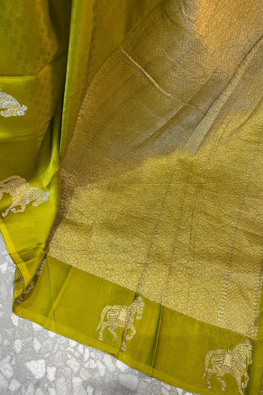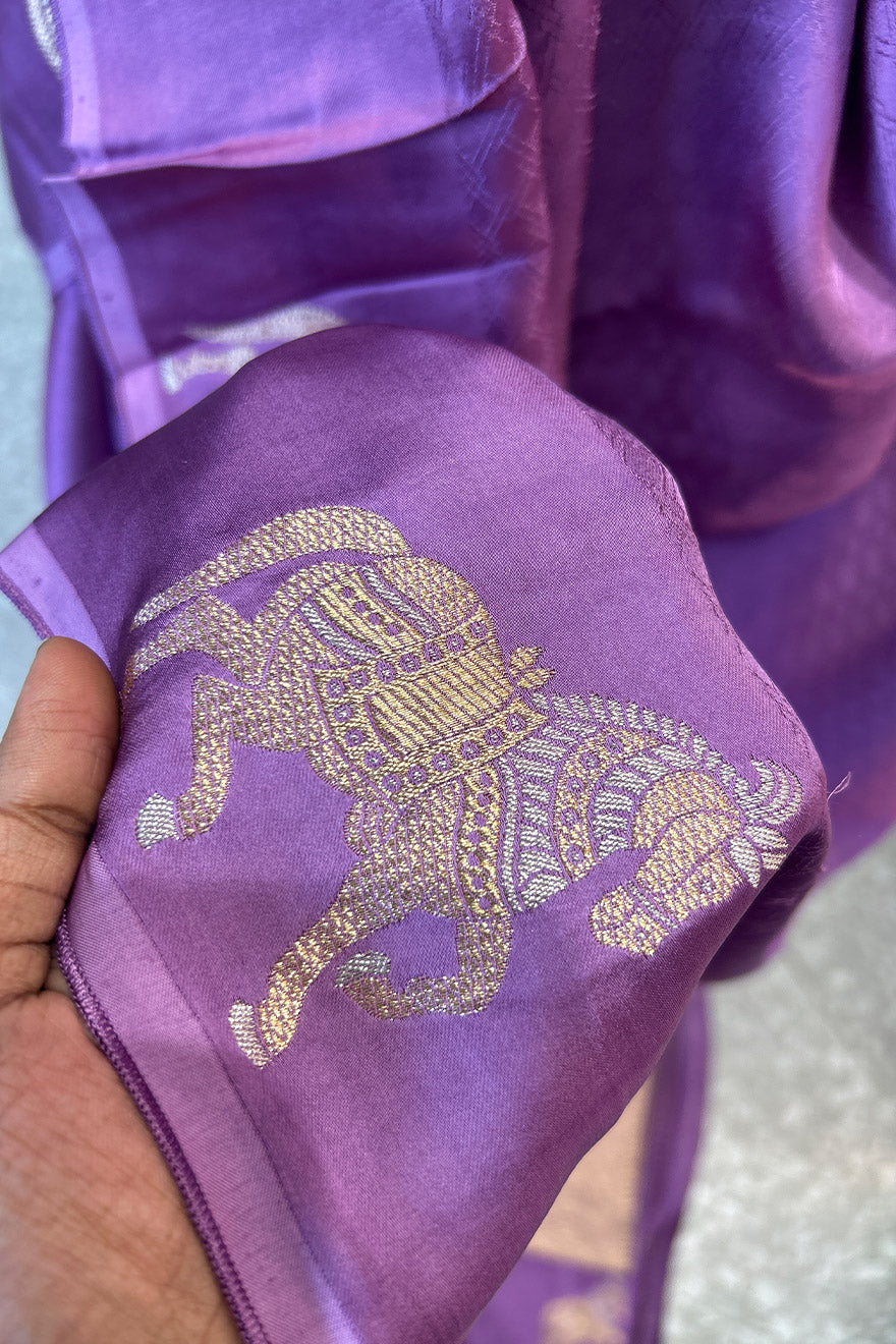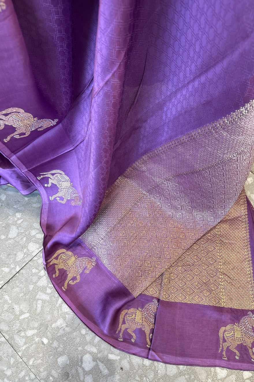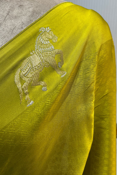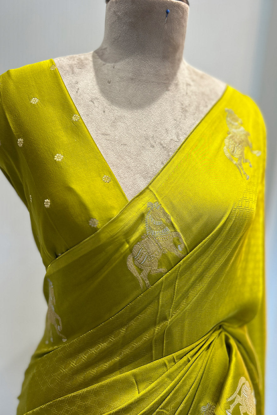 - Satin blend semi silk saree- horse motif