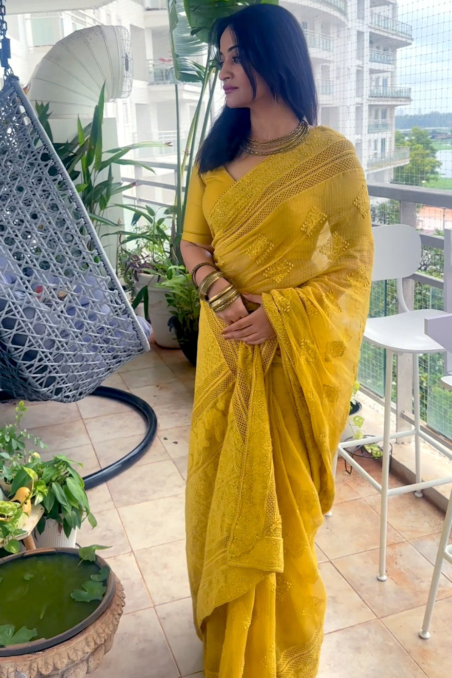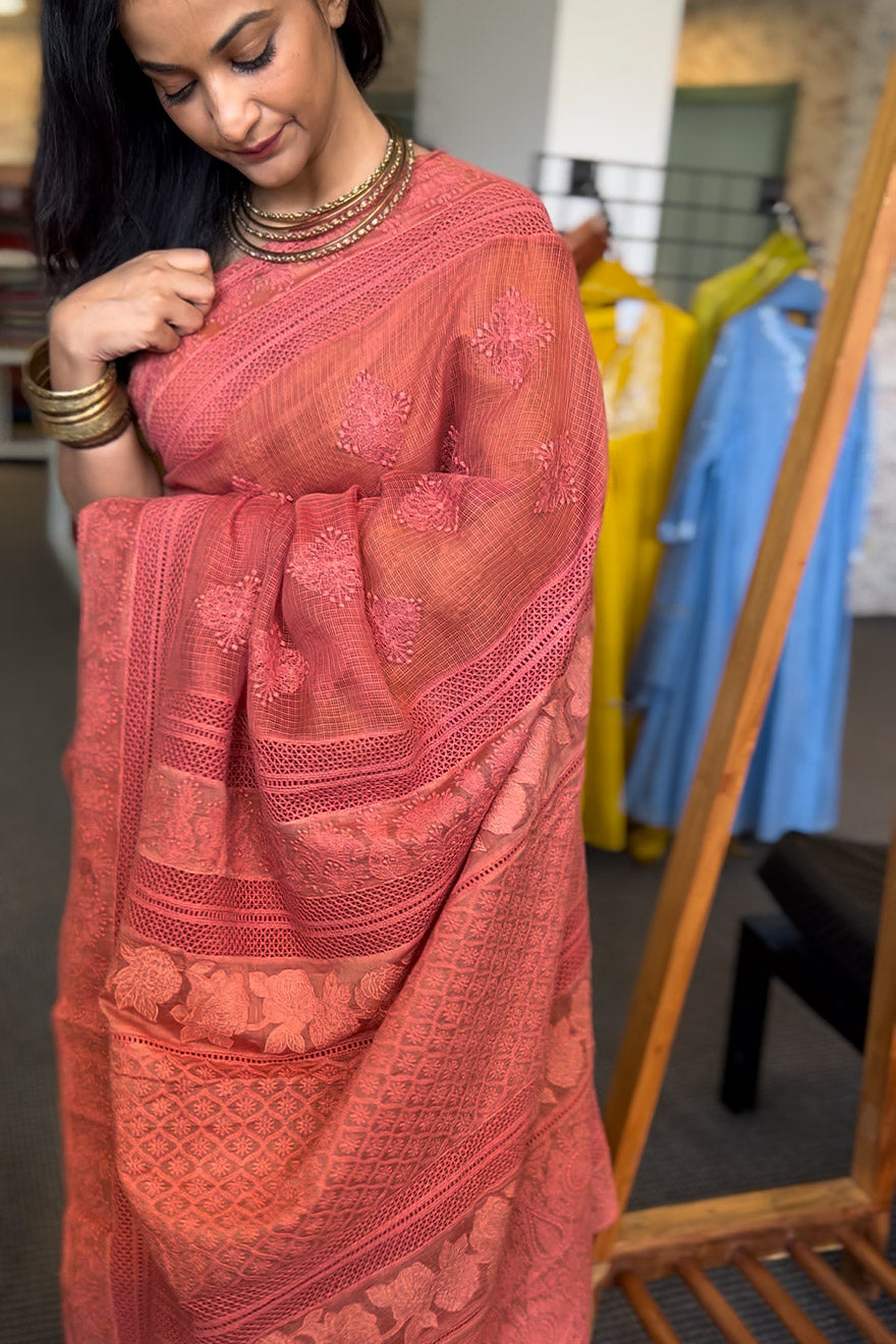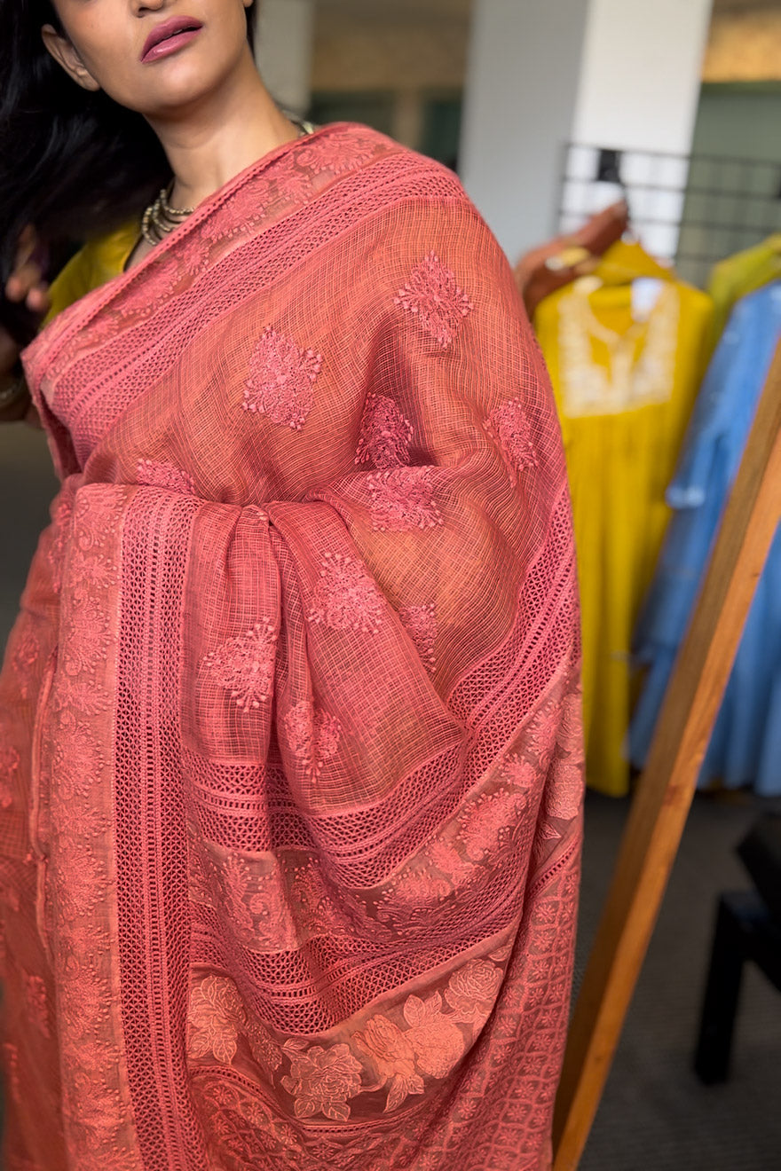 Chikenkari embroidered saree