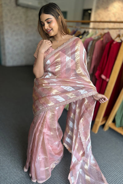 Premium organza striped saree