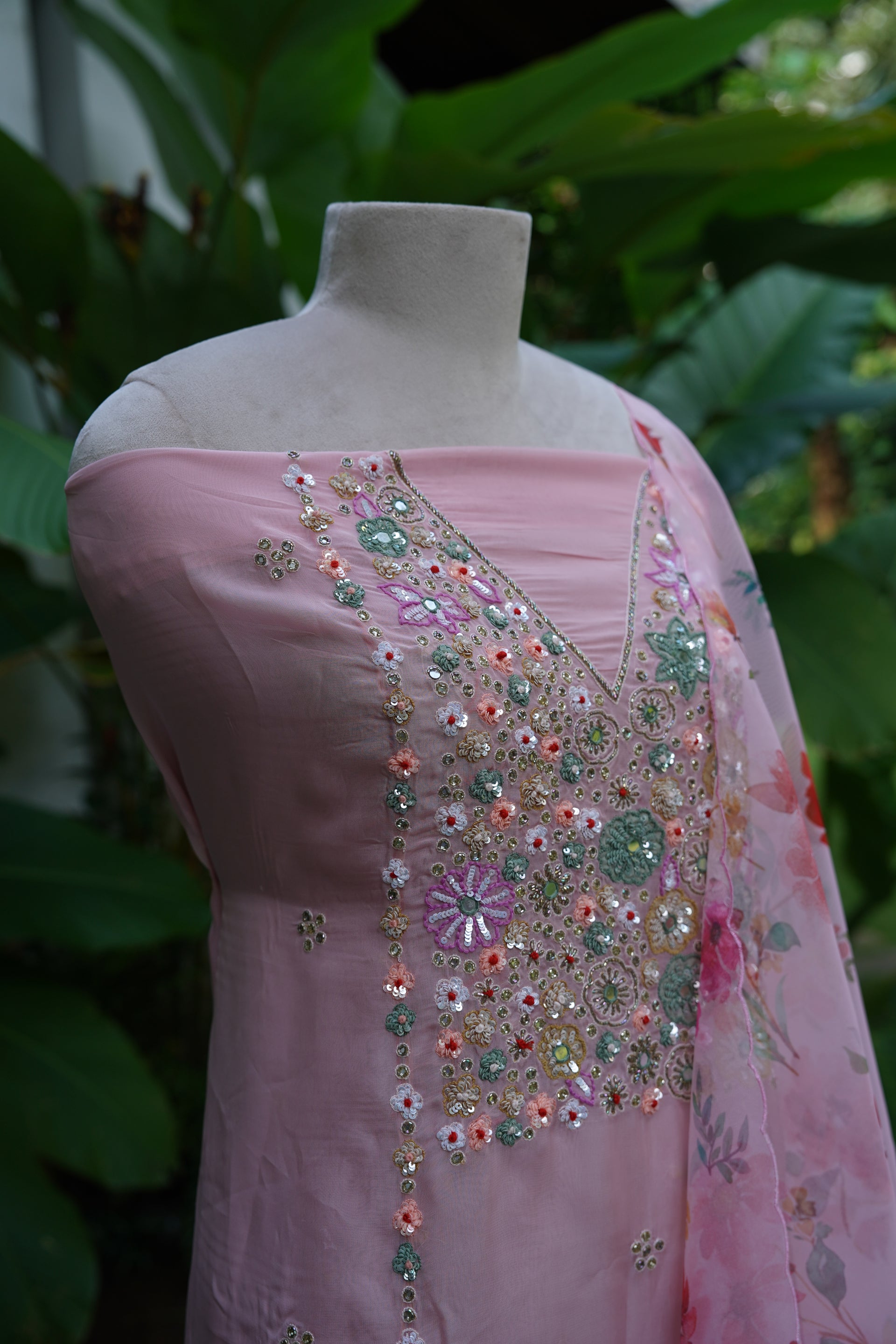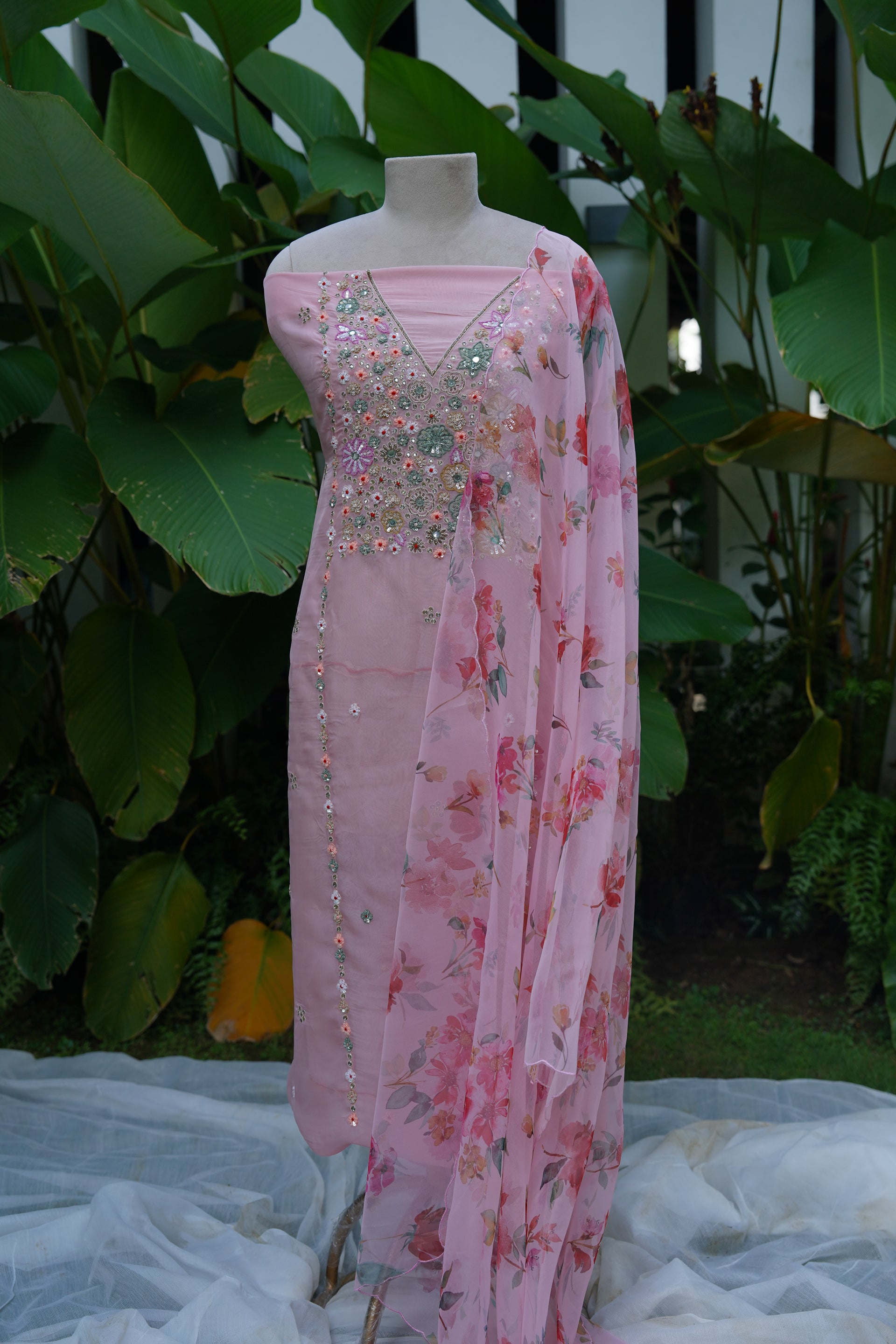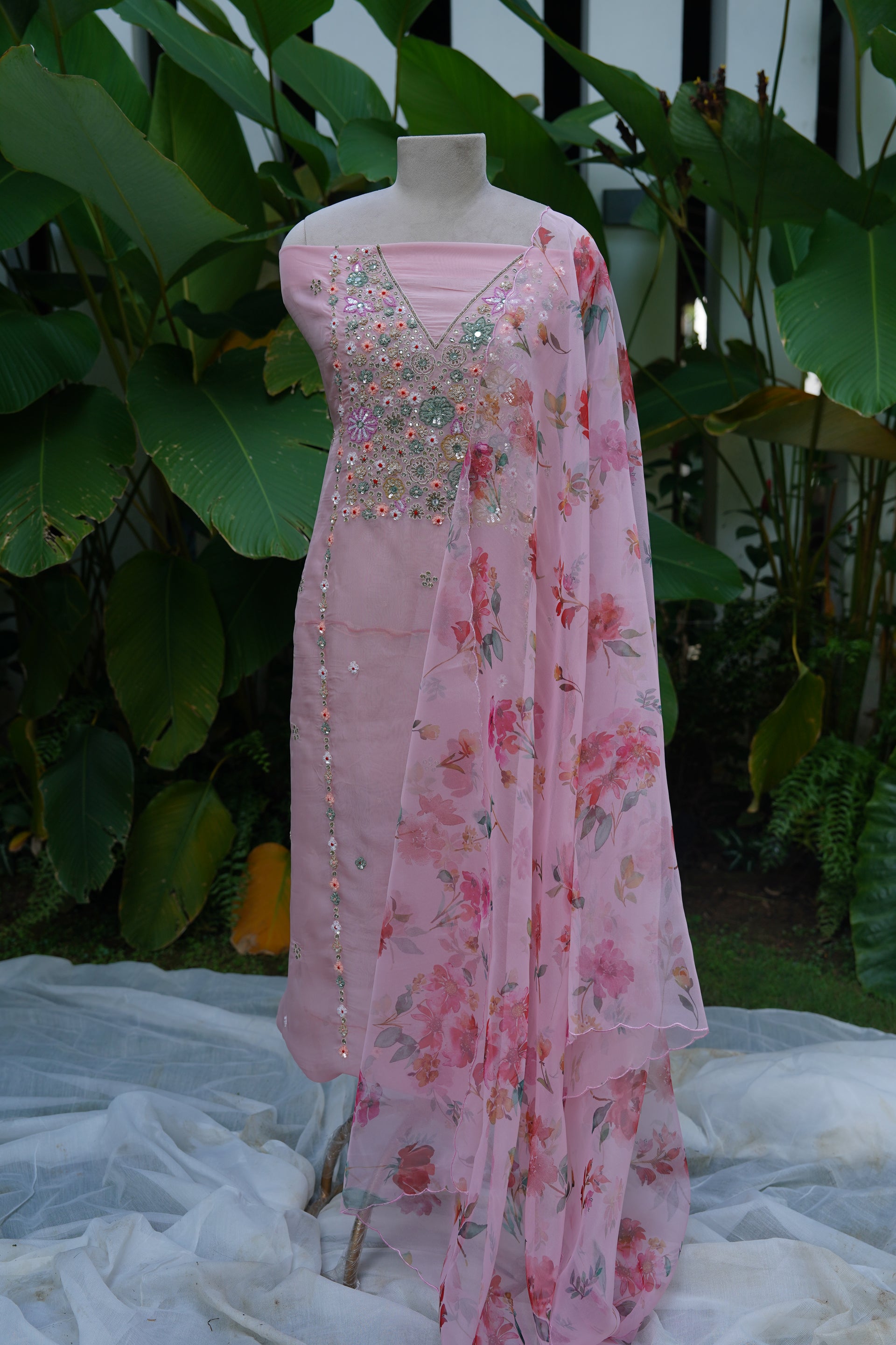 - Georgette Organza Unstitched Set