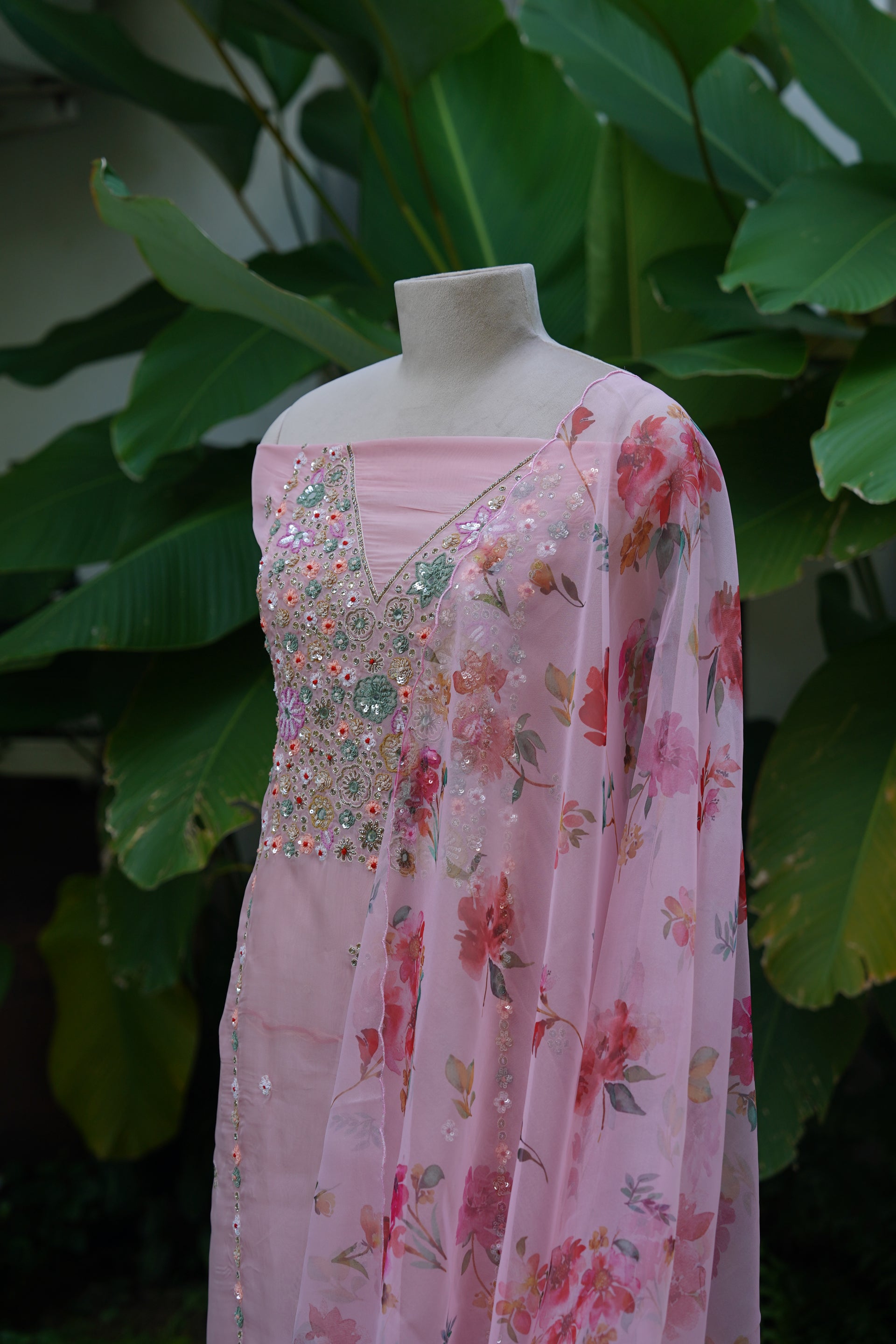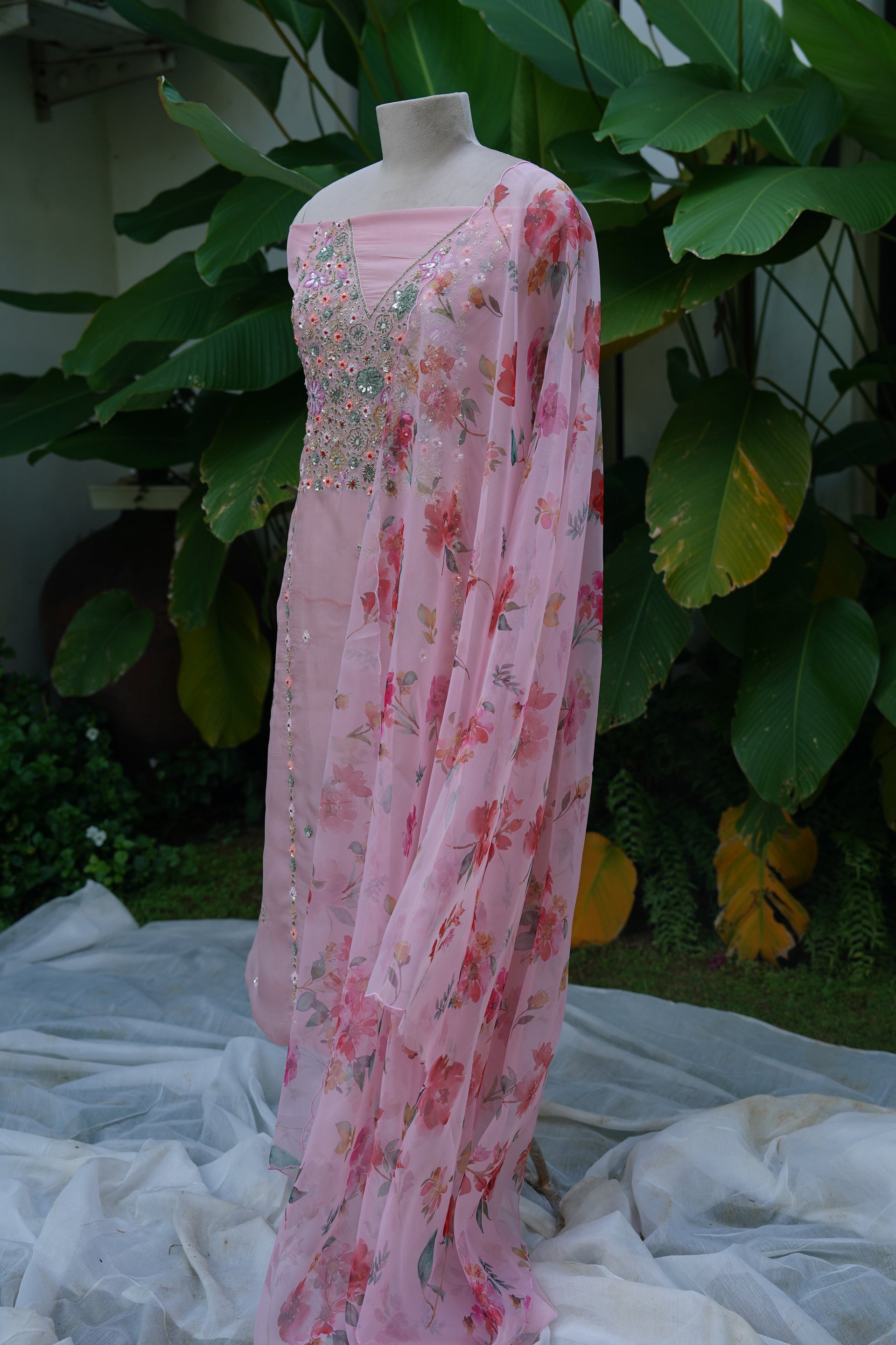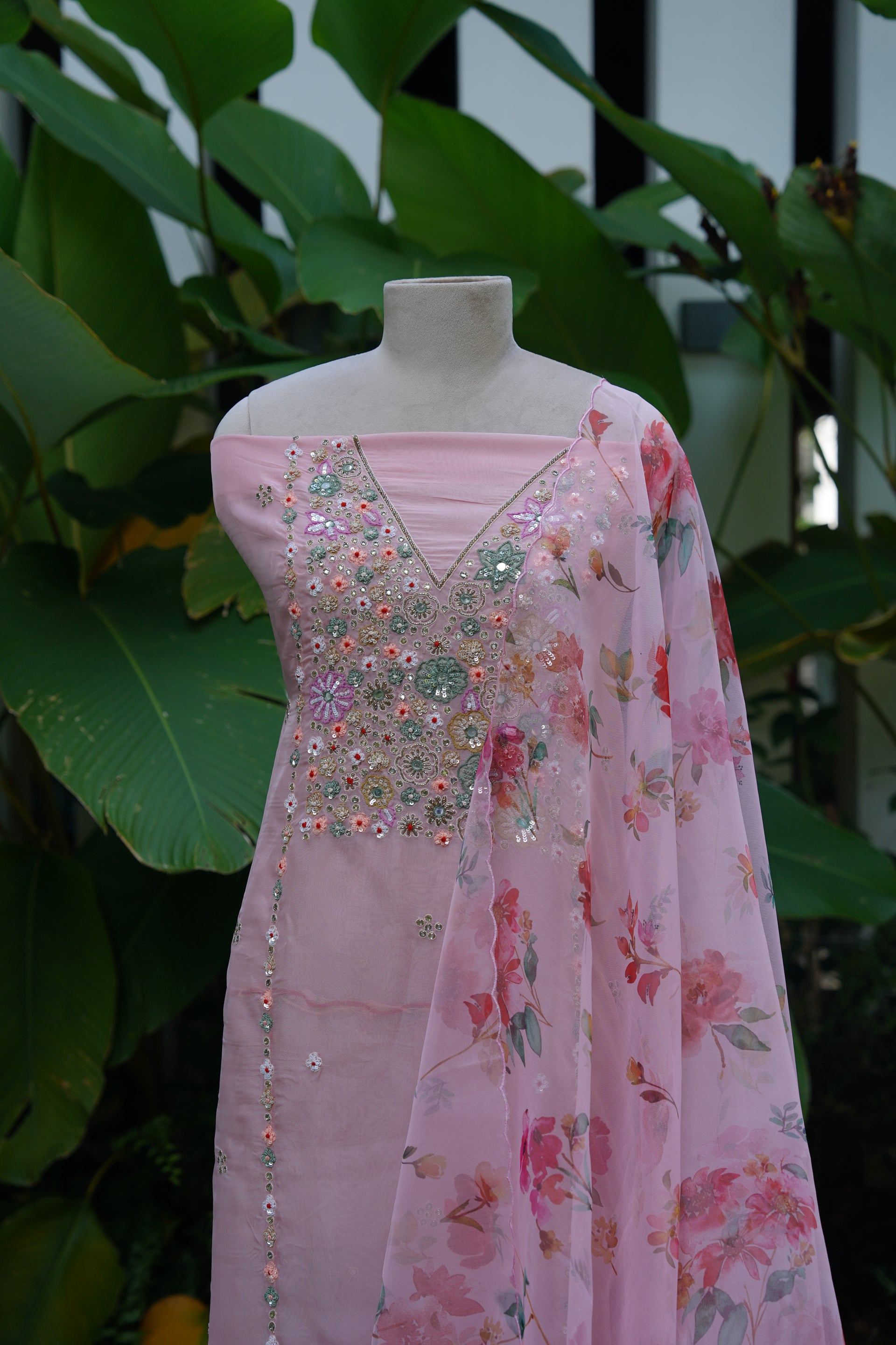 - Georgette Organza Unstitched Set
