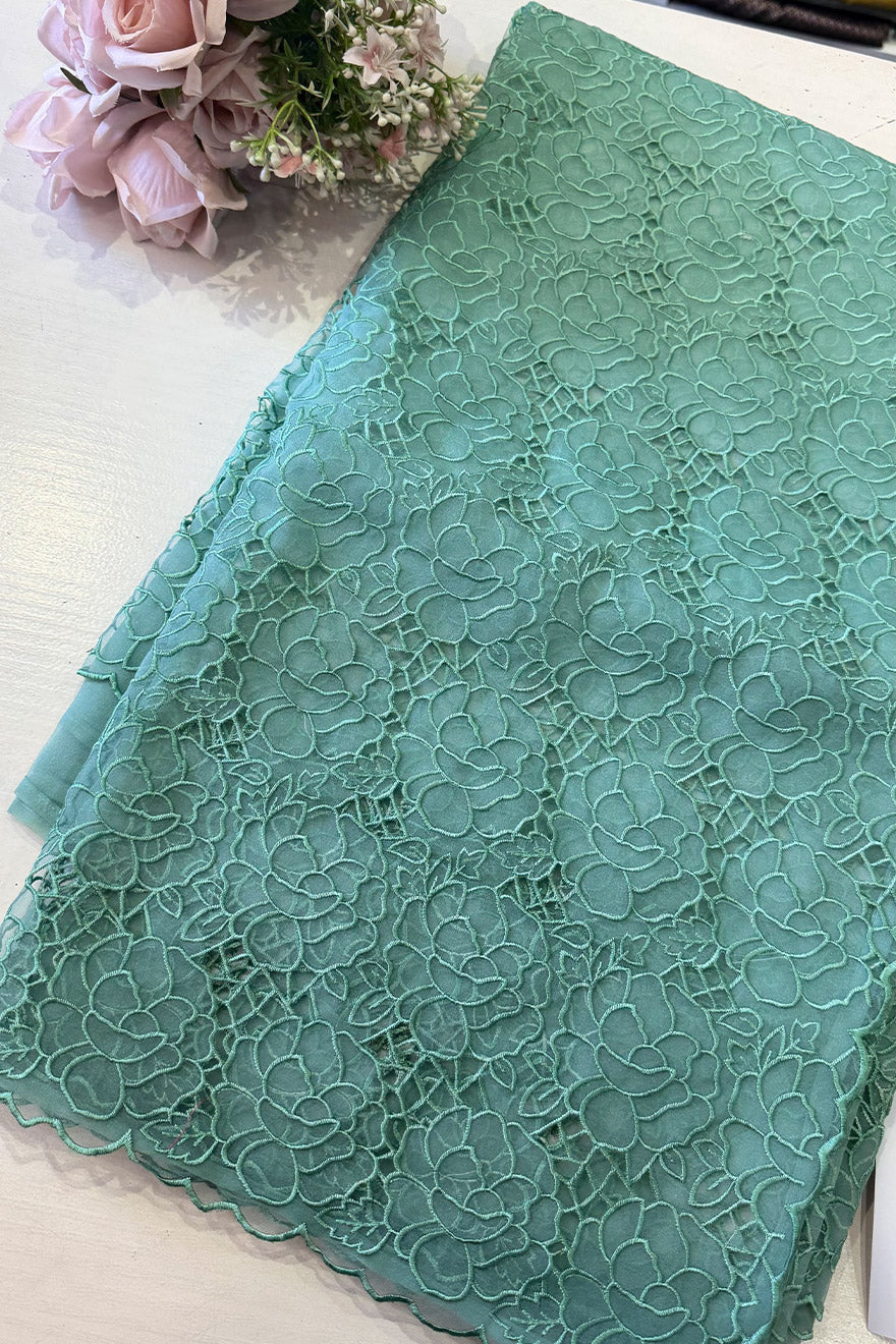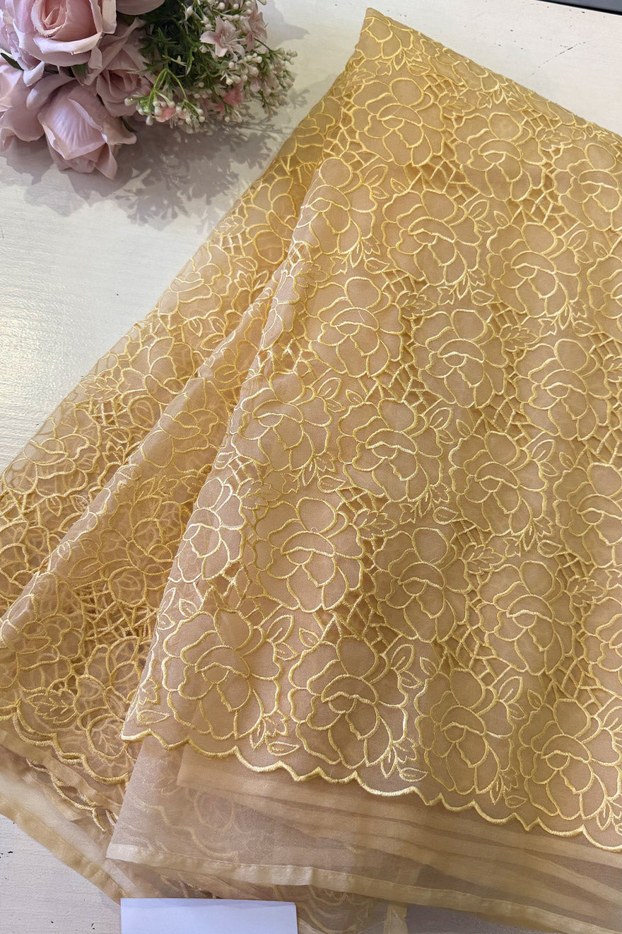- Organza saree with appliqué work
