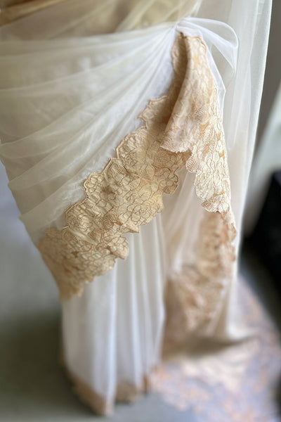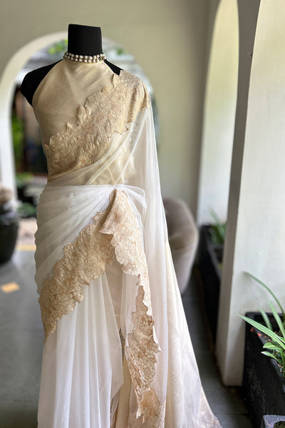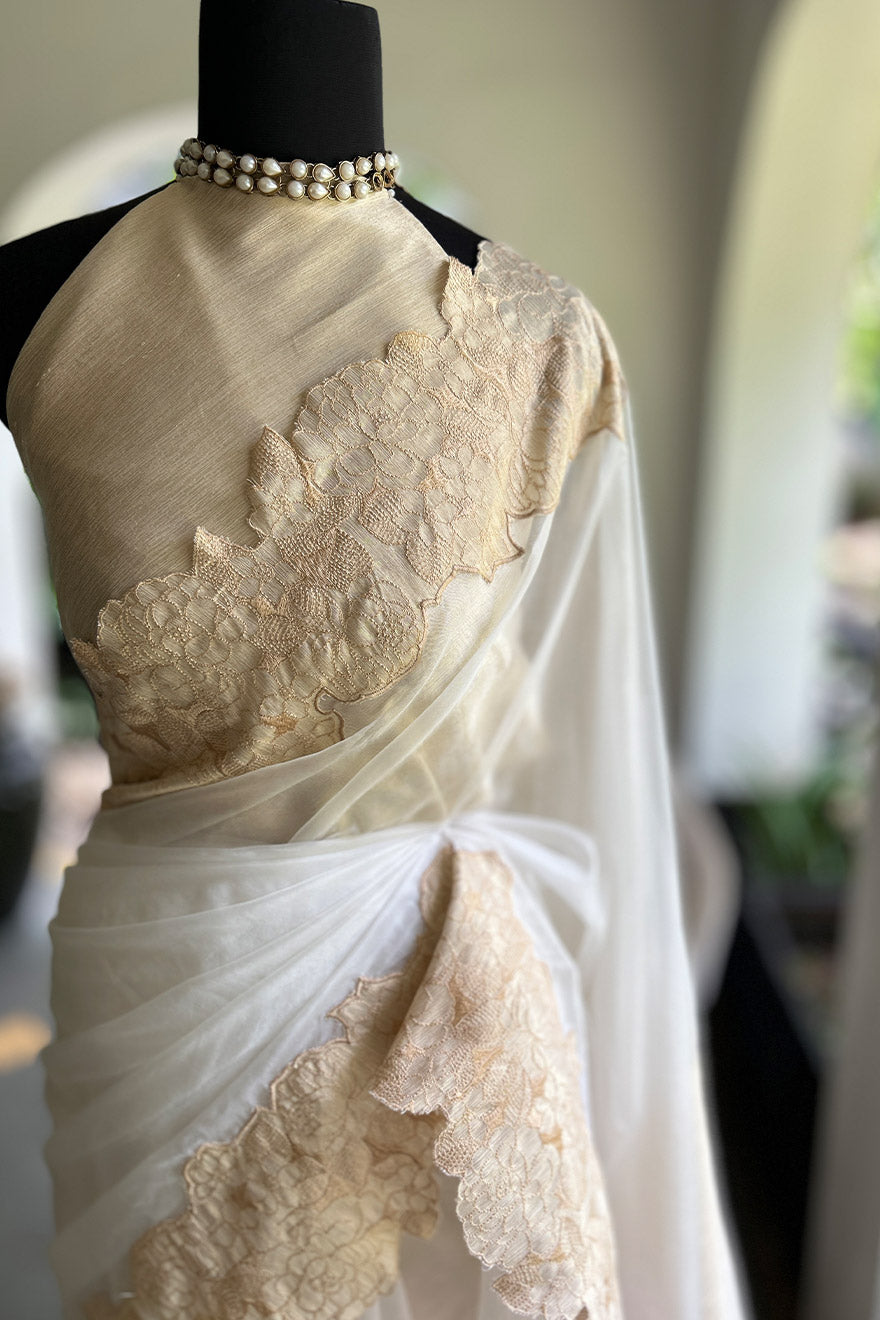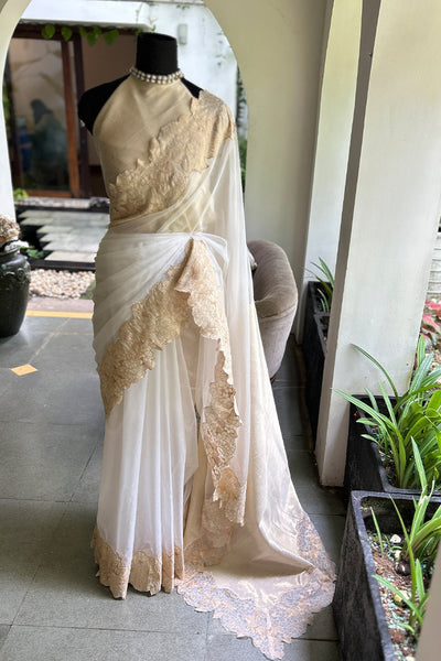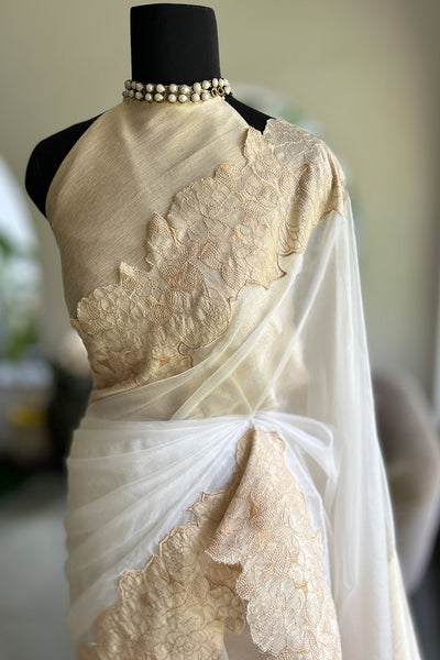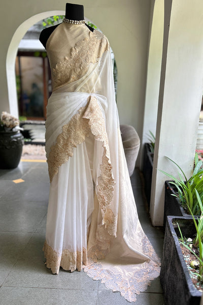- Organza saree with tissue border- Onam
