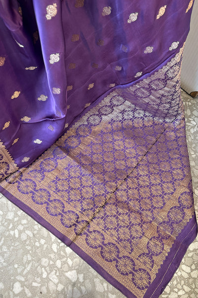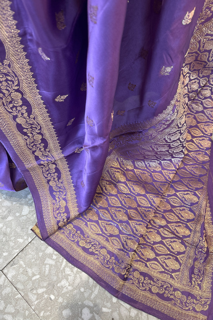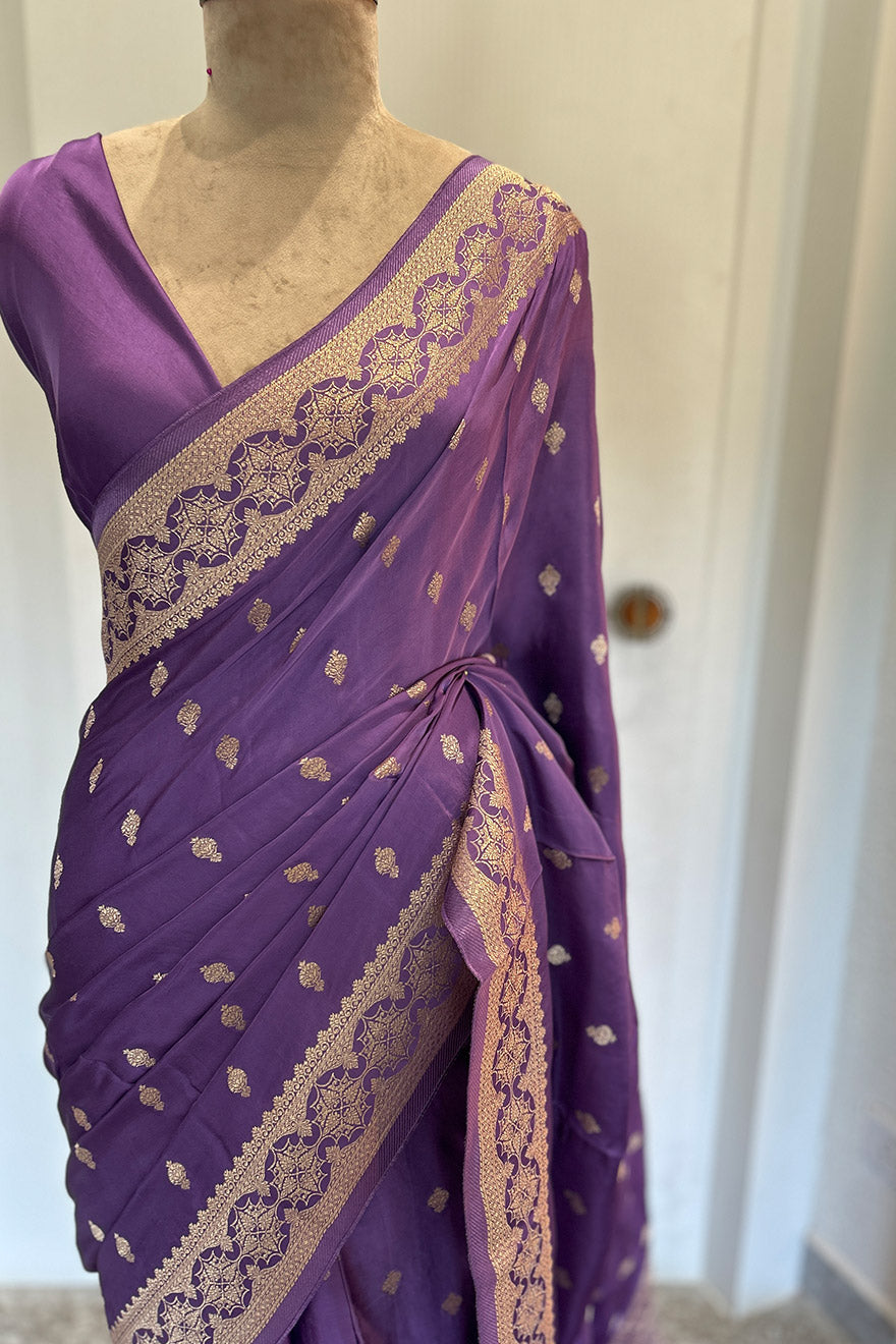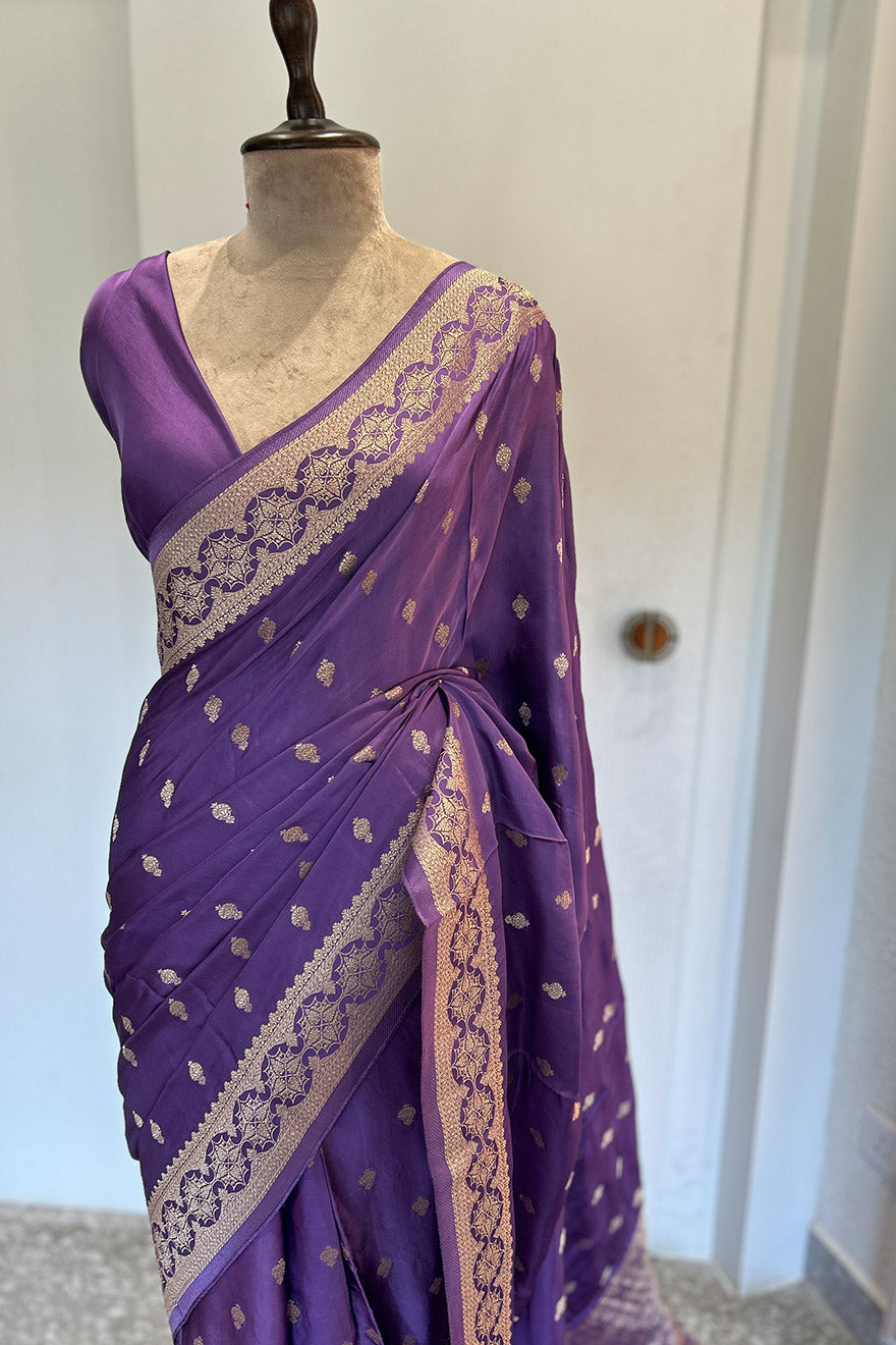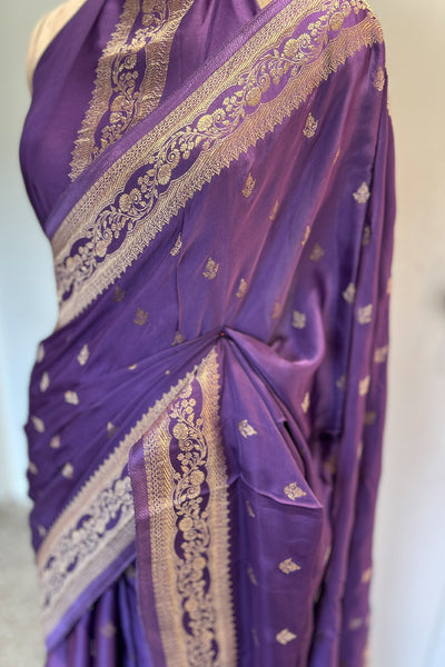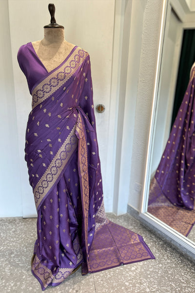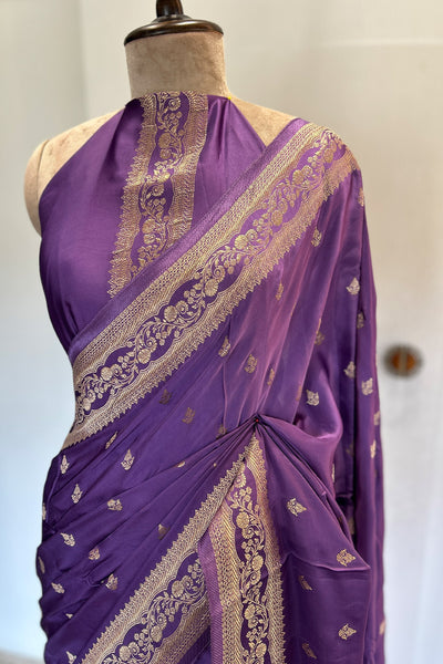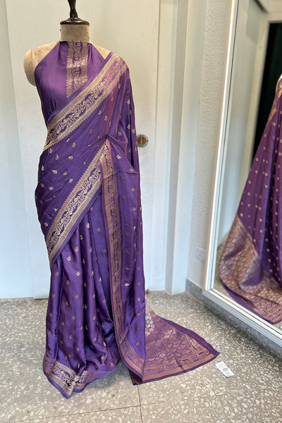 - Satin silk saree with Banarasi weaving - purple