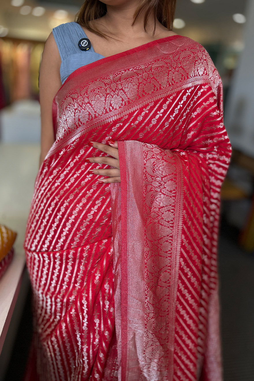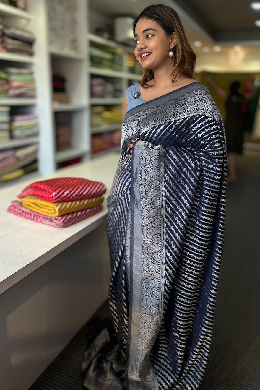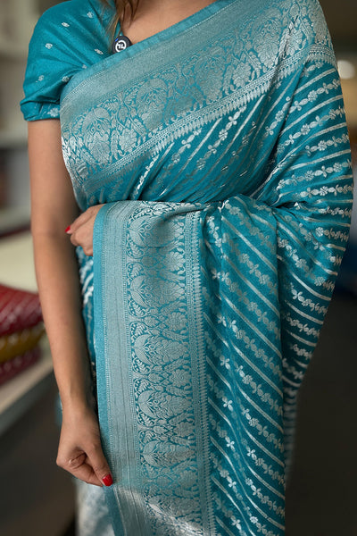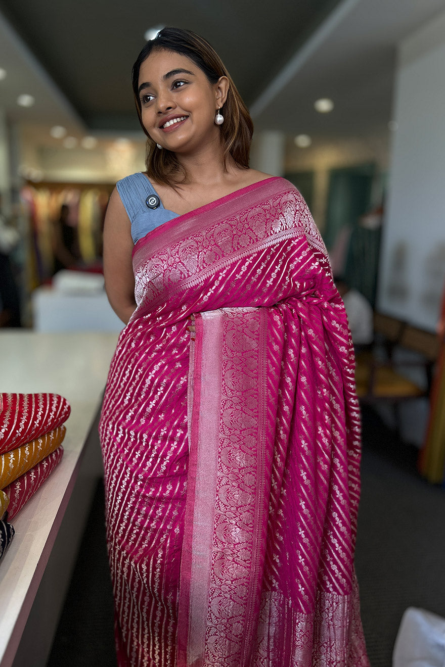 - Semi silk sarees with stripes weaving
