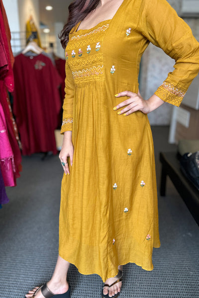 - Aline Mul Chanderi dress with handwork
