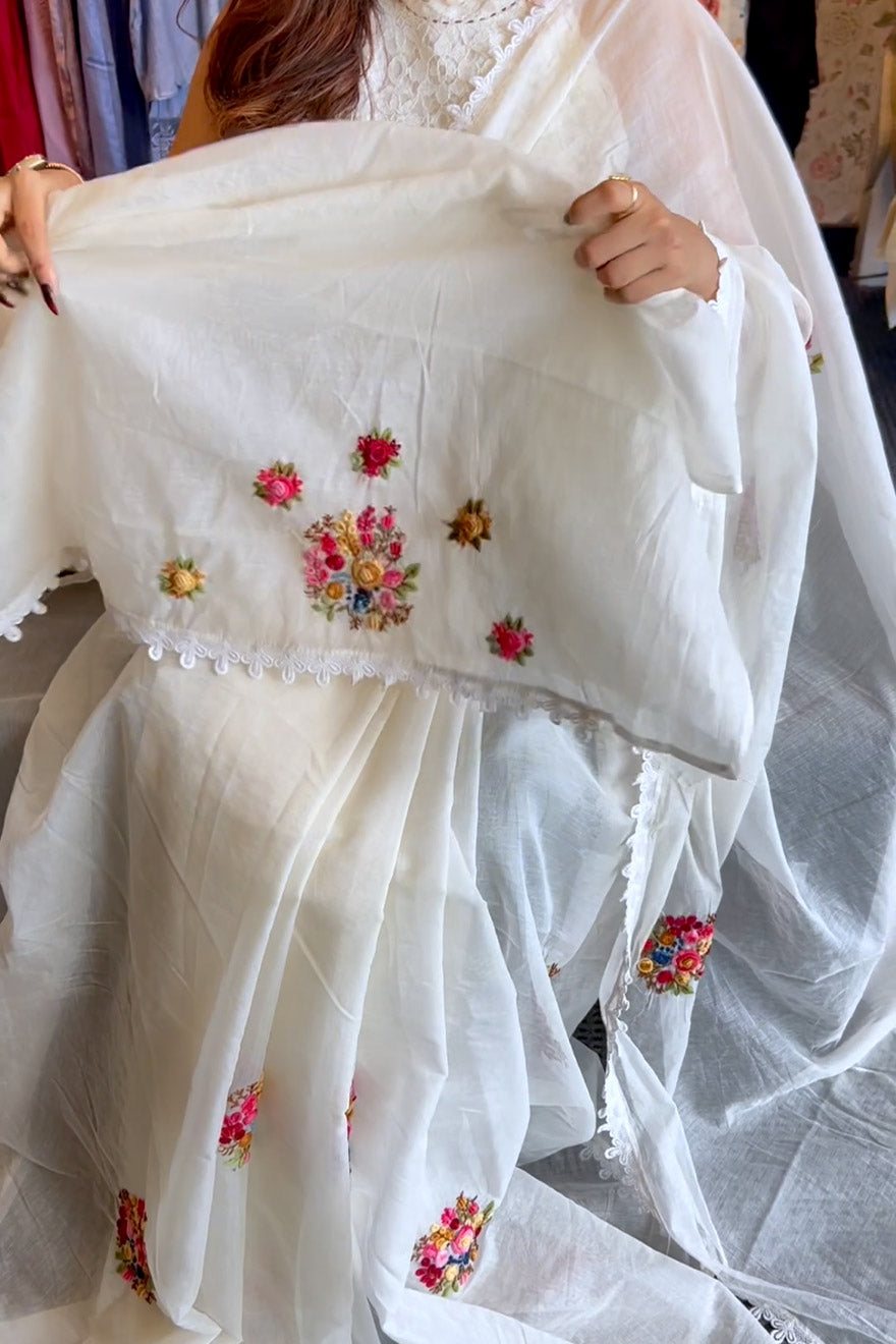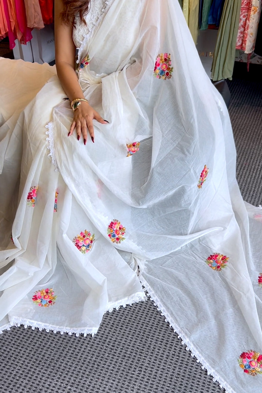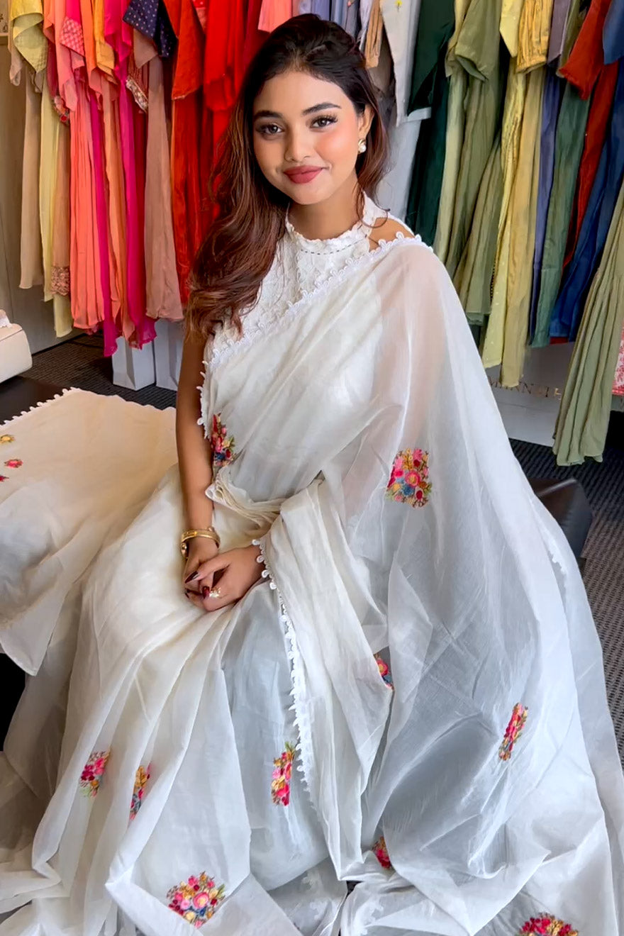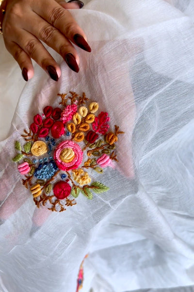 - Chanderi saree with multi shade handwork motif - Pattern 1