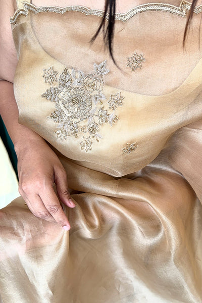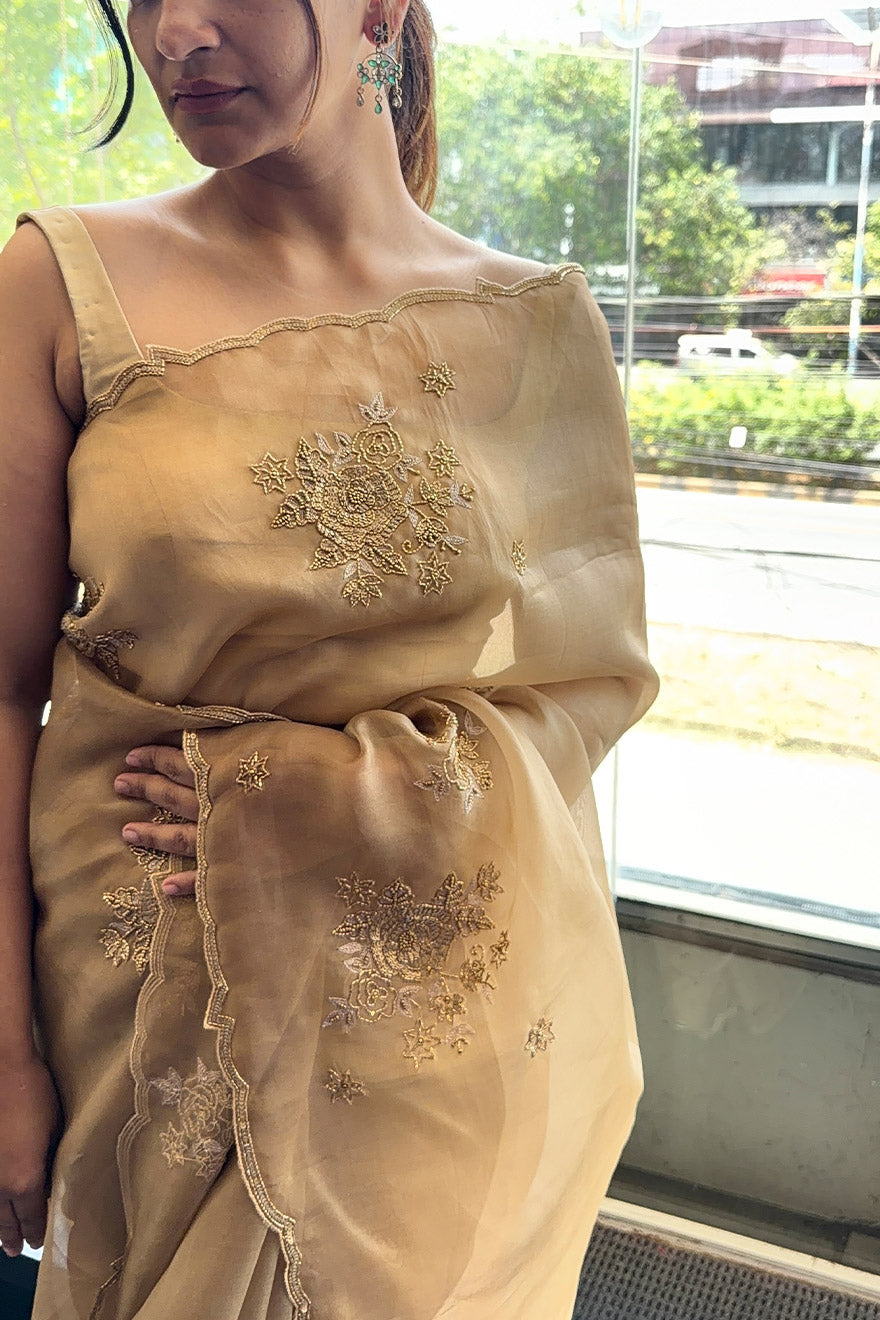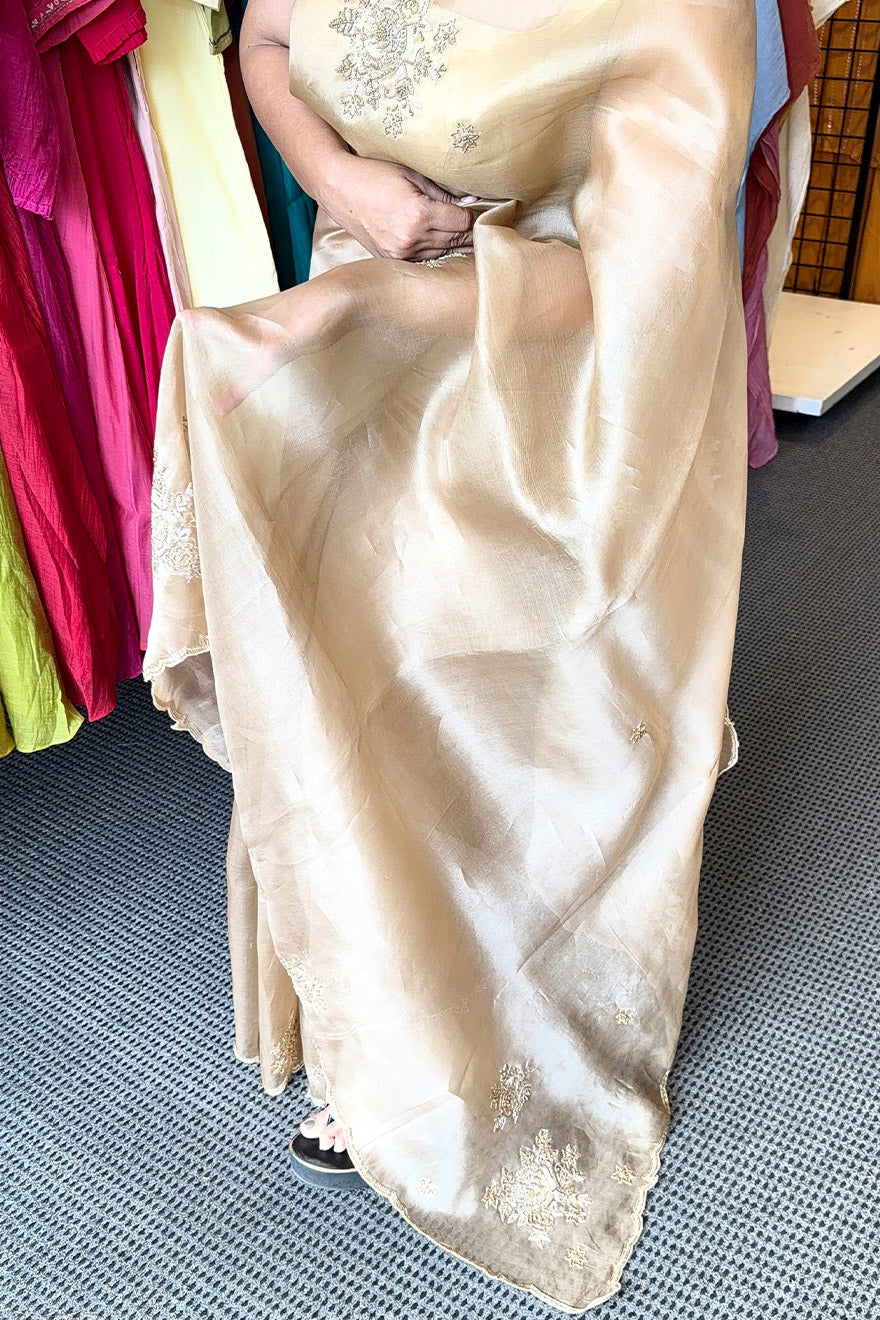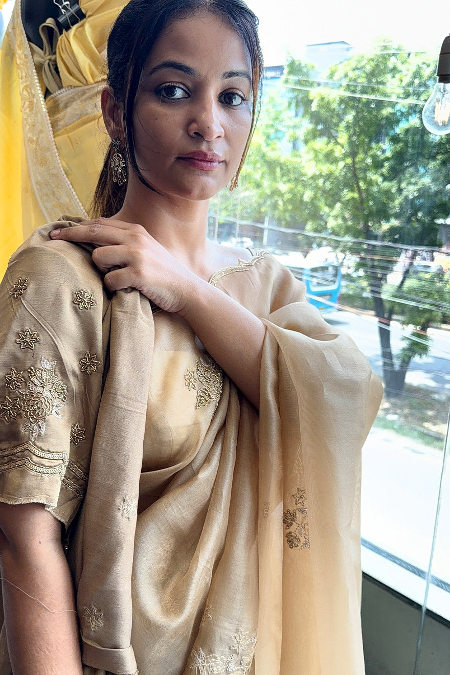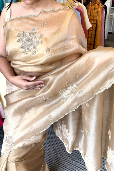 Premium golden tissue saree with satin silk blouse