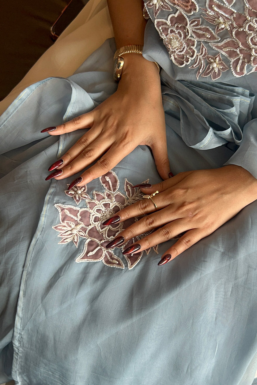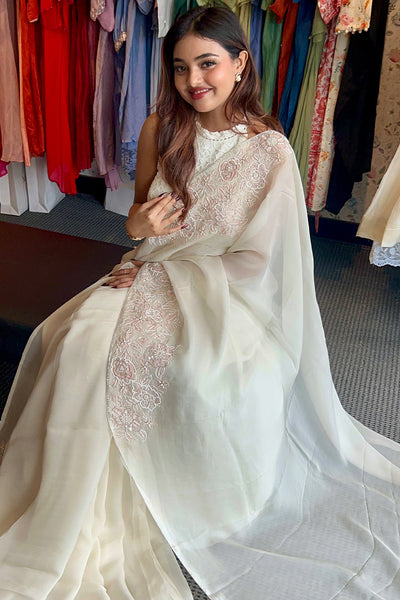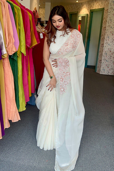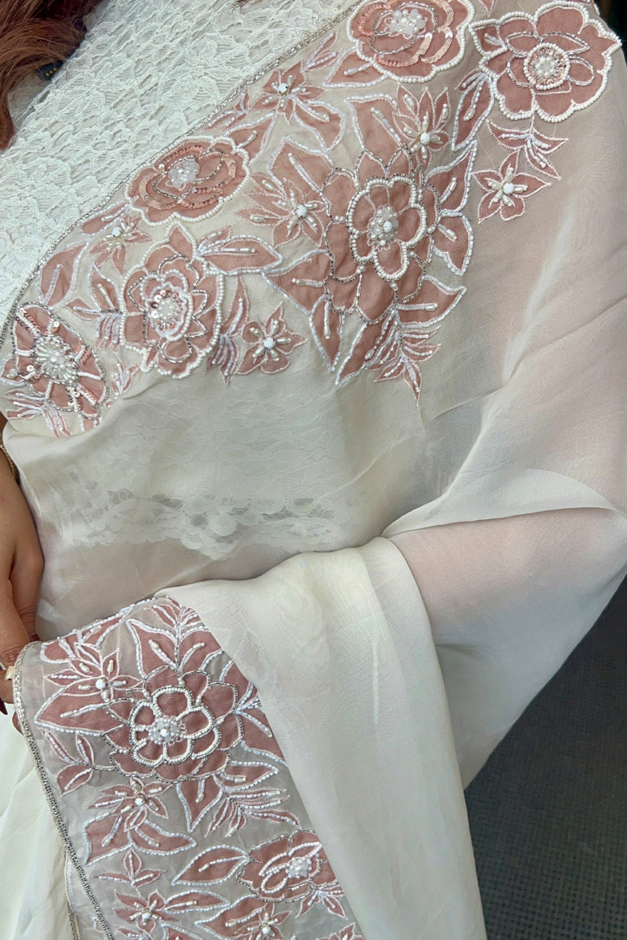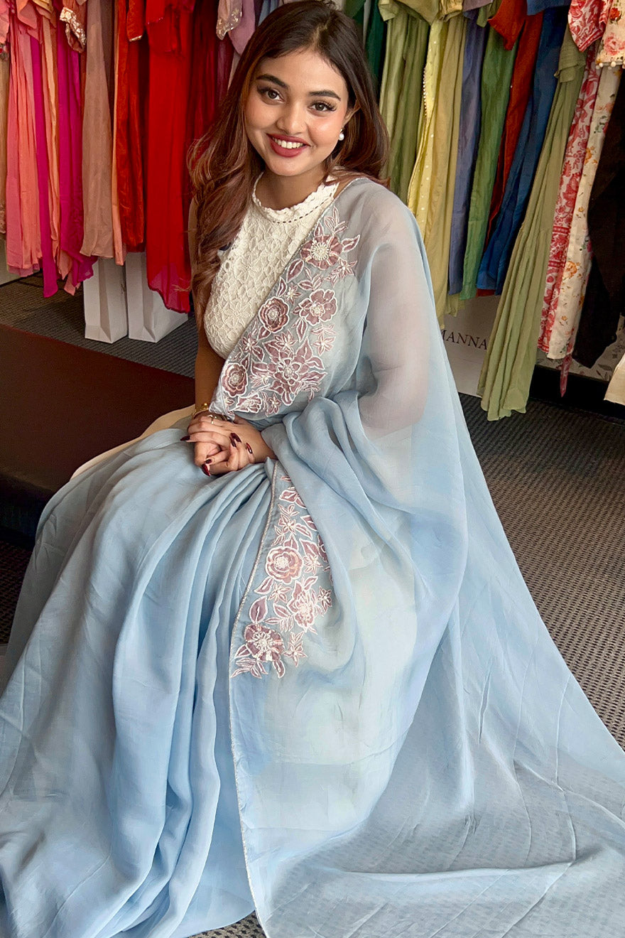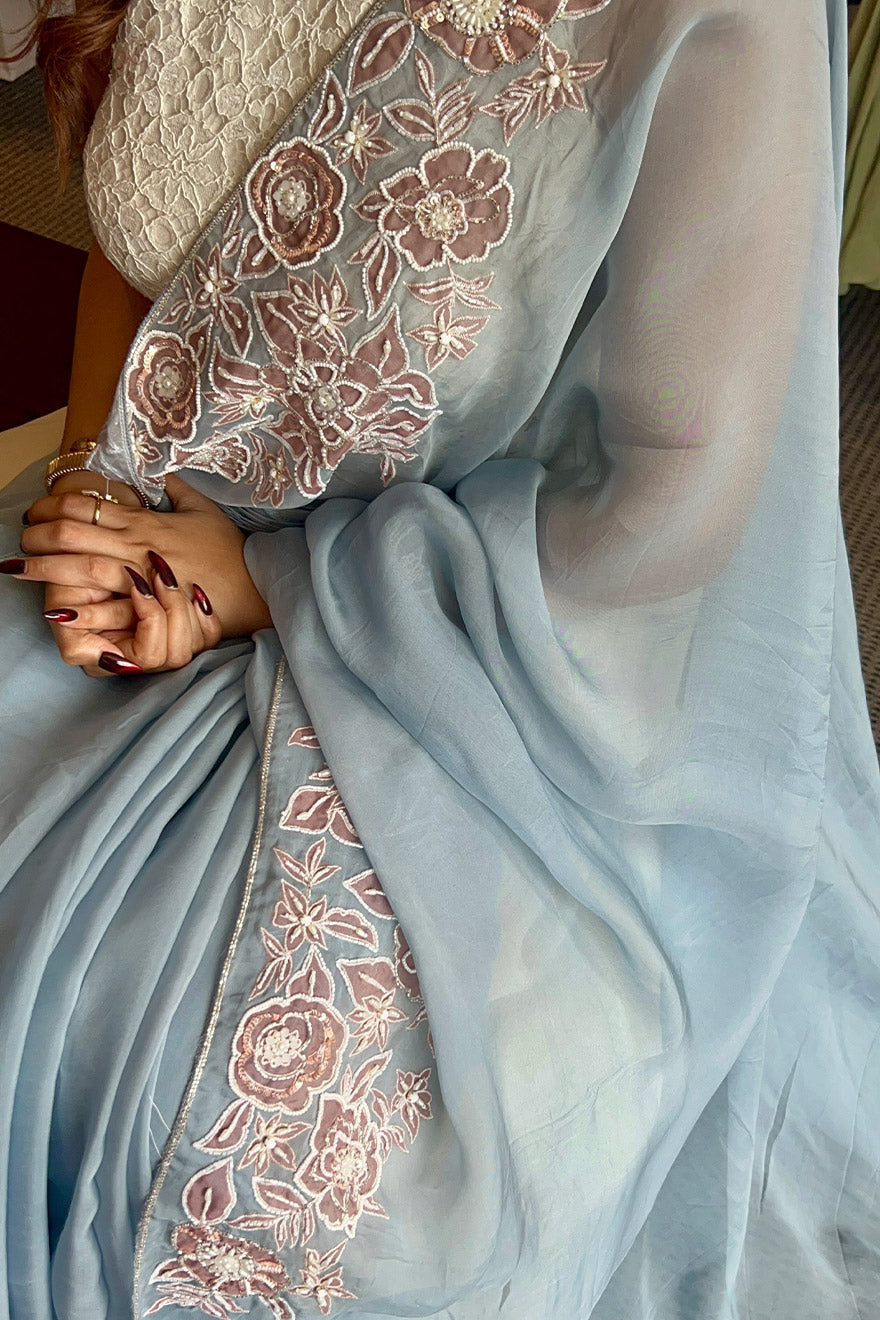 Pure organza saree with placement applique